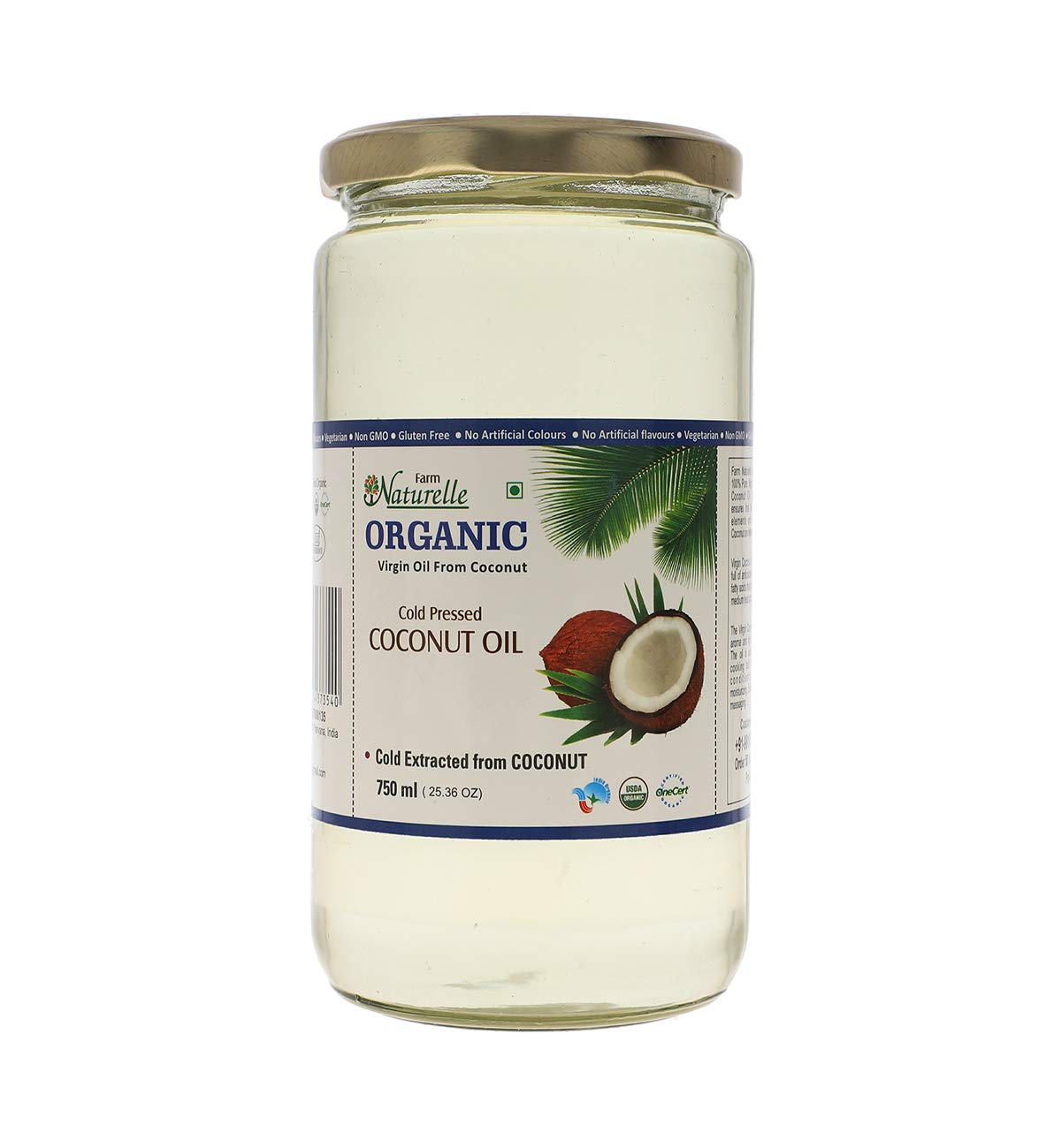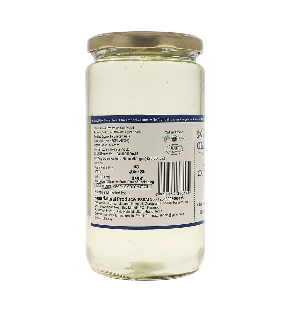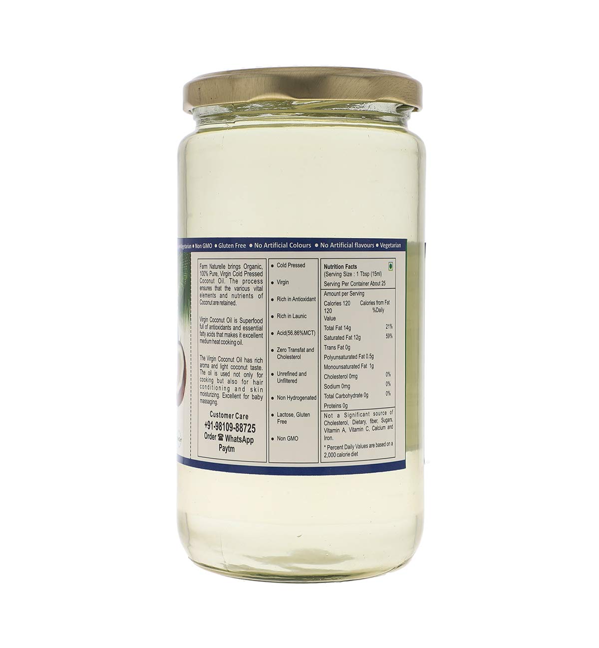 Farm Naturelle - 100 % Pure Organic Virgin Cold Pressed Coconut Cooking Oil | 750ml In Glass Battle