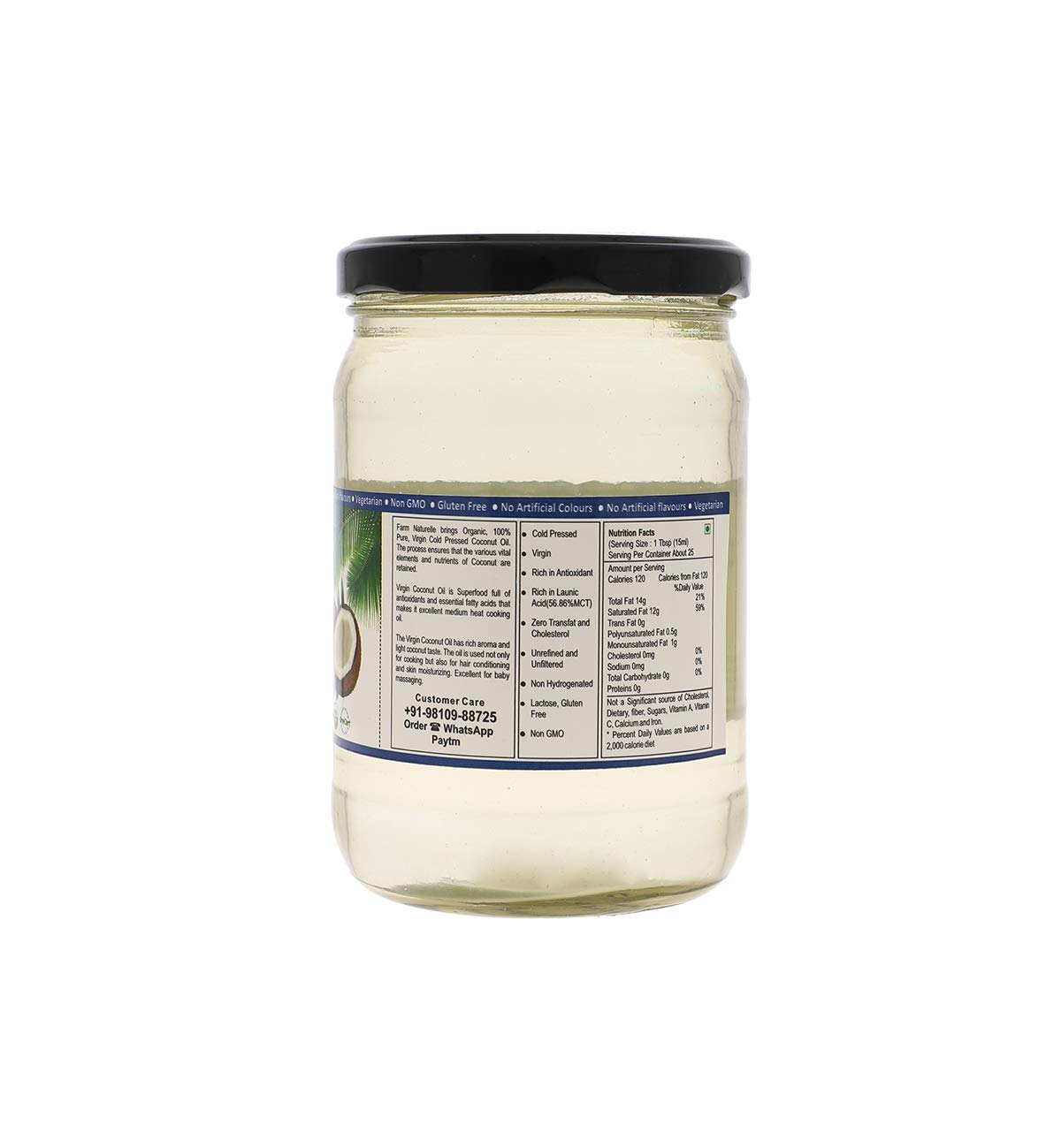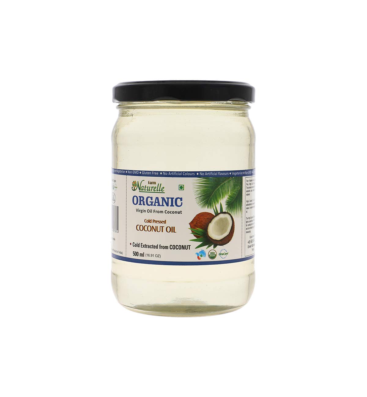 Farm Naturelle - 100 % Pure Organic Virgin Cold Pressed Coconut Cooking Oil ( Kachi ghani/ Chekku ) | 500ml In Glass Bottle