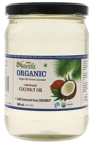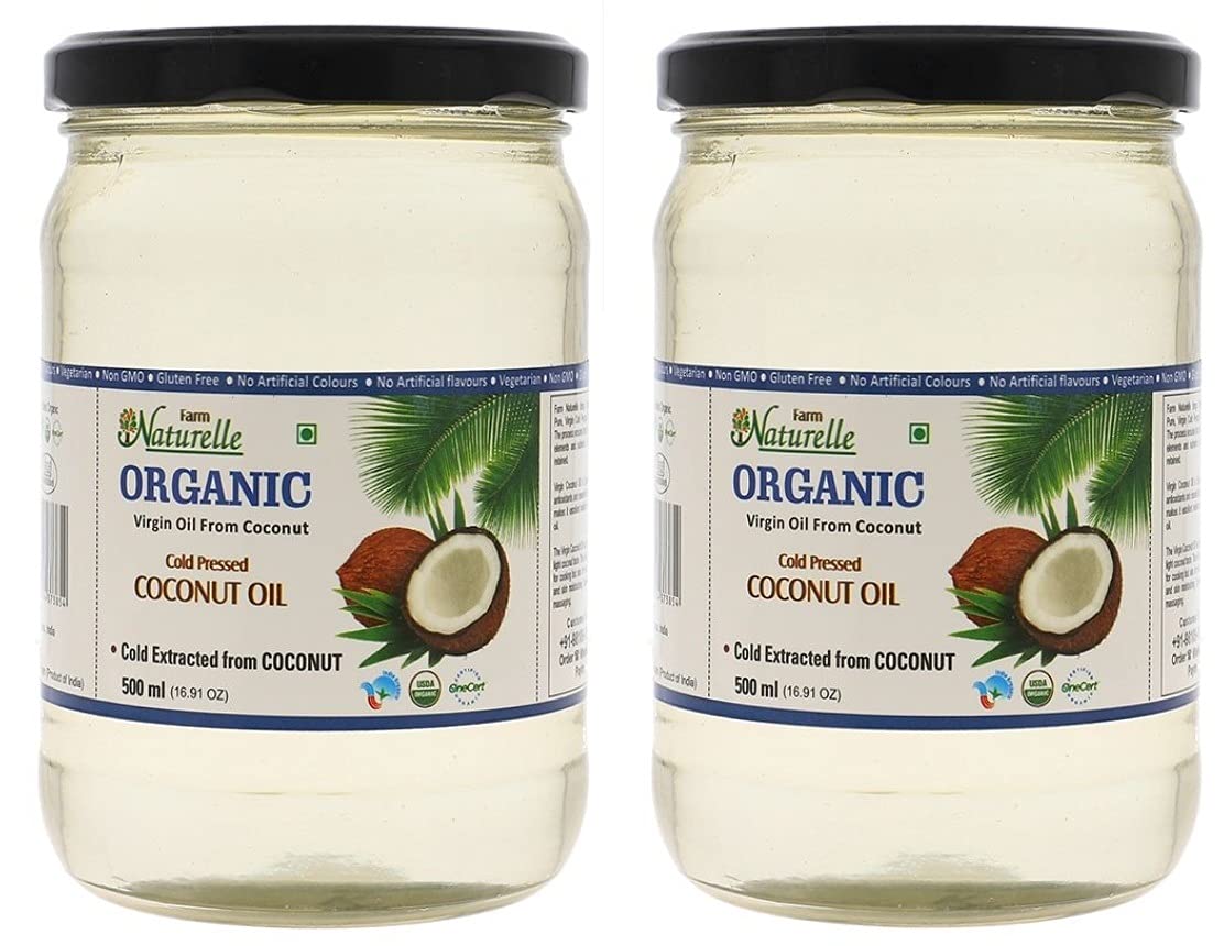 Farm Naturelle- Coconut Oil | 100% Pure Virgin Cold Pressed Oil | Coconut Oil for Hair and Skin & Daily Cooking | Oil In Glass Bottle 500ml x 2