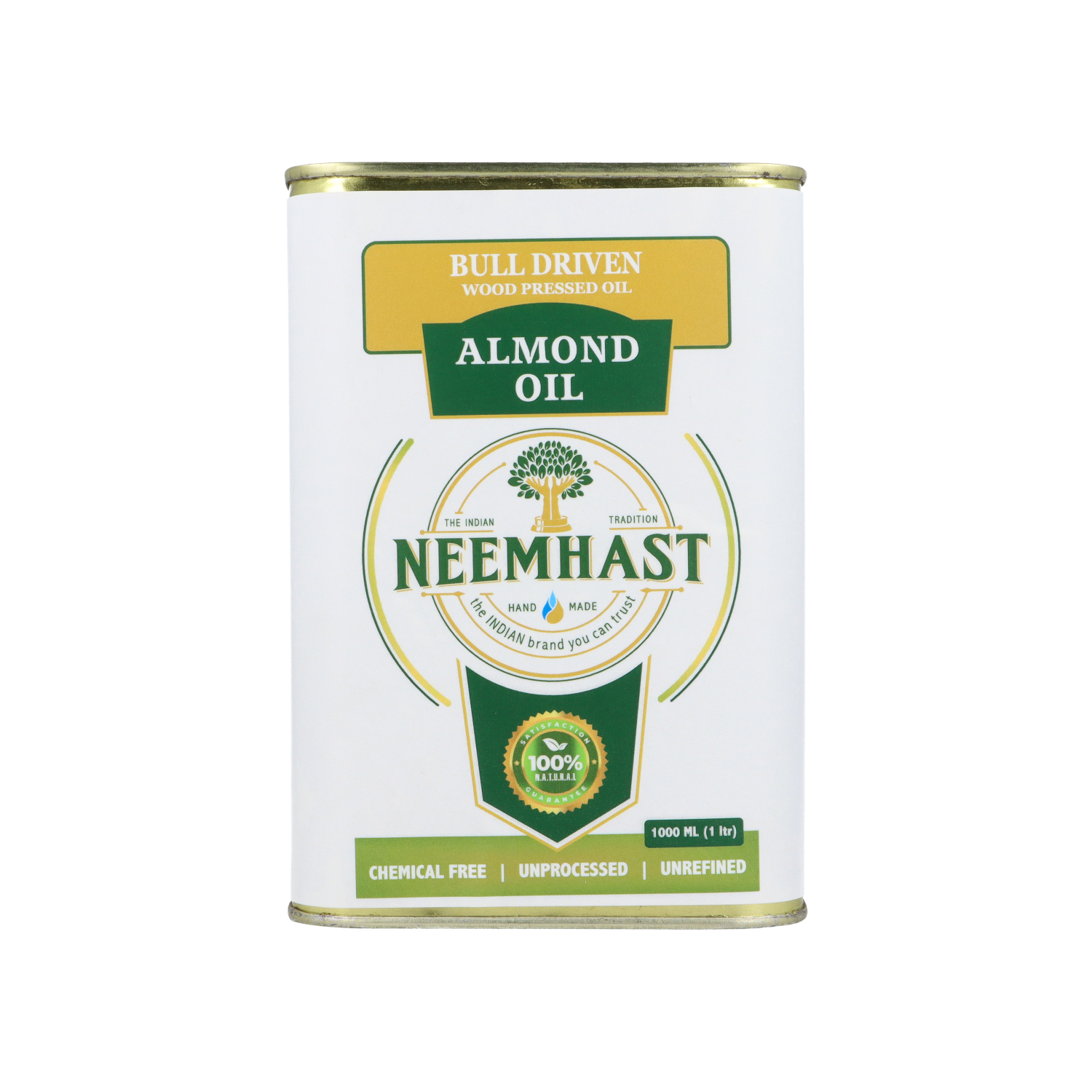 Bull driven wood pressed almond oil is a traditional and healthy oil that is extracted from almonds using a Wood-pressed method. This method involves grinding the almonds using a wood press powered by bulls or oxen, which generates less heat and helps retain the natural flavor and aroma of the oil. Bull driven wood pressed almond oil is rich in healthy fats and essential vitamins such as vitamin E, which may help promote health and improve overall health. The oil is unrefined and free from any chemical making it a healthier alternative to refined oils. The natural nutrients present in the oil make it a good source of nutrition. Additionally, the oil is also known for its moisturizing and nourishing properties, making it a popular choice for skincare and haircare. Bull driven wood pressed almond oil is commonly used in many South Asian cuisines for cooking and as a natural remedy for various health issues. However, it is important to note that while it is a healthy oil, it should be consumed in moderation as part of a balanced diet. Overall, bull driven wood pressed almond oil is a versatile and healthy oil that can be used for cooking, skincare, and haircare, and is a great addition to any natural and healthy lifestyle.