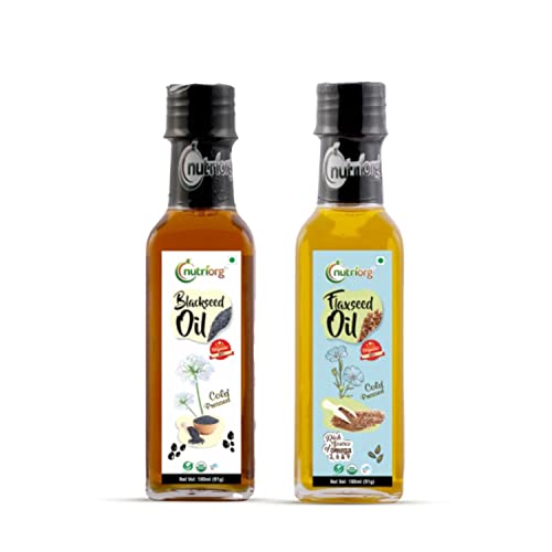 Nutriorg Certified Organic Flaxseed Oil & Black Seeds Oil 200ml ( Pack of 2*100ml) | Weight Management | Omega 3 Rich | Hair & Skin Care