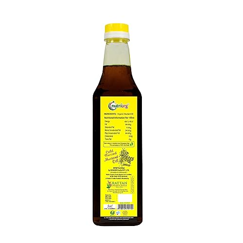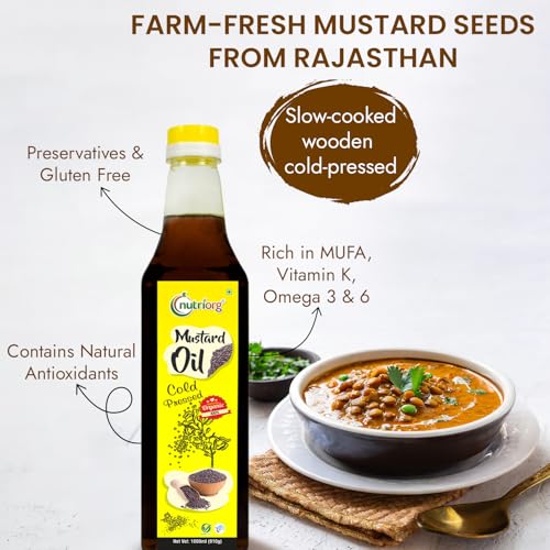 Nutriorg Cold Pressed 100% Organic Mustard Oil 1 L | Natural Filtration for Nutrients Retention | Essential Cooking Purpose | Unrefined | Can be Used for Hair & Skin
