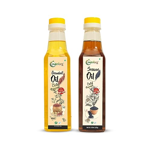 Nutriorg Cold Pressed 100% Organic Sesame Oil & Groundnut Oil (Pack of 2 * 500 ml) | Essential Cooking Purpose | Rich MUFA & PUFA | Rich Vitamin E | Hair & Skin Care