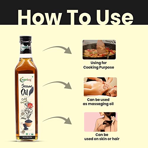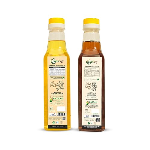 Nutriorg Cold Pressed 100% Organic Sesame Oil & Groundnut Oil ( Pack of 2* 500 ml) | Essential Cooking Purpose | Rich MUFA & PUFA | Rich Vitamin E | Hair & Skin Care