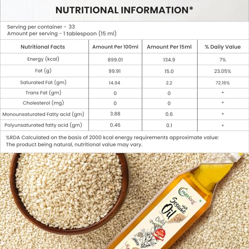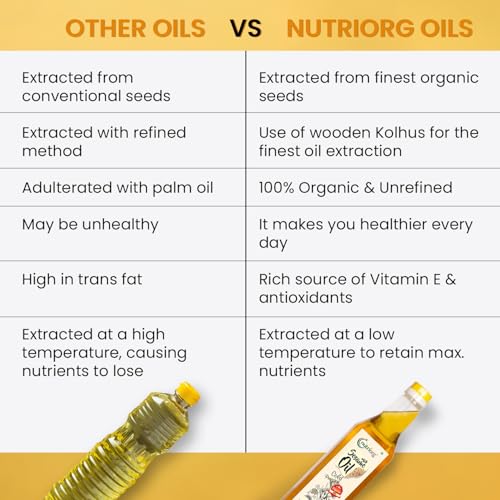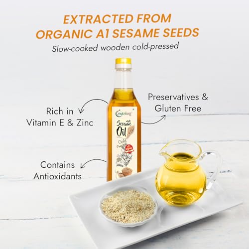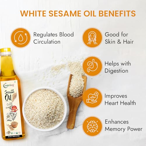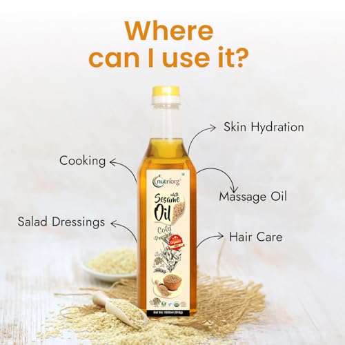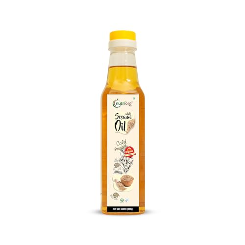 HomeGroceryCookingCold Pressed OilsNutriorg Cold Pressed 100% Organic White Sesame/Gingelly Oil 500 ml | for Cooking Essential Purpose | Natural Filtration for Nutrient Retention | Can be Used Hair & Skin