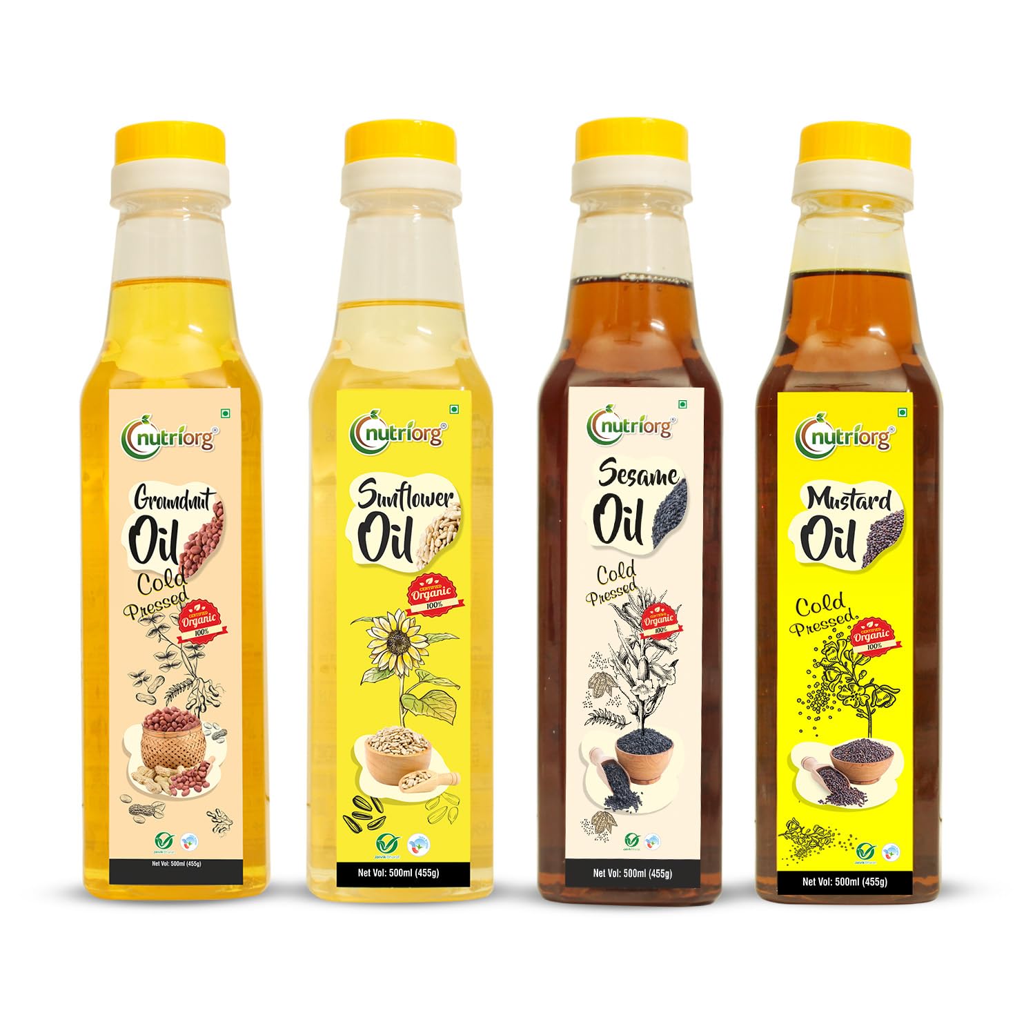 nutriorg Cold Pressed Organic Mustard Sesame Sunflower and Groundnut Oil ( 500 ml ) - Pack of 4