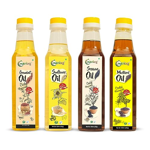 Review For Nutriorg Cold-Pressed USDA Certified Organic Mustard Oil & Sesame Oil & Sunflower Oil & Groundnut Oil (Pack of 4) -Organic Mustard OilOrganic Sesame OilOrganic Sunflower OilOrganic Groundnut OilPure Vegetarian Product Rich color, aroma & flavor of seeds No toxic chemicals Good Source of MUFA Promotes Heart HealthI have tried many brand oils but always felt the aroma is missing which all these oils have and quality not pure as we get in villages, so I thought to try Nutriorg Cold-Pressed oil first time, and it is totally amazing.We use all these oils for cooking & the whole family loves these oils.Recommended to All for best quality & taste
