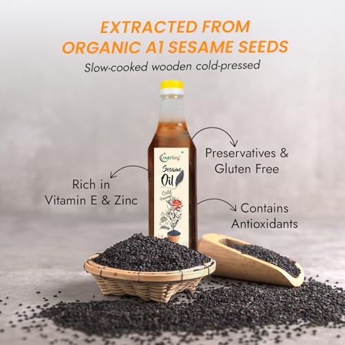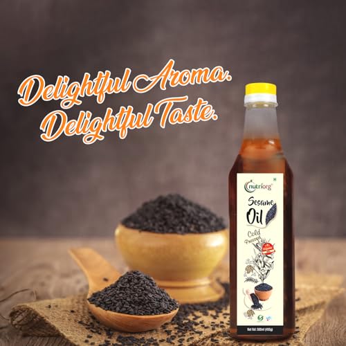 Nutriorg Organic Cold Pressed Black Sesame Oil 500ml | Kachi Ghani | Wood Pressed | Unrefined & Chemical-Free | Rich in Vitamin E & Antioxidants | Ideal for Cooking, Oil Pulling, Hair & Skin Care | Pure Gingelly Oil