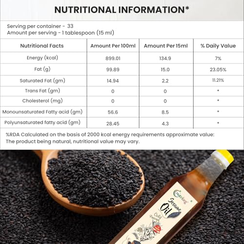 Nutriorg Cold Pressed Sesame (Gingelly) Oil is extracted using the Traditional Wooden Cold-press Method. No Artificial Preservatives or chemicals have been used at any point of the 'Extraction Filtration & Packing' process