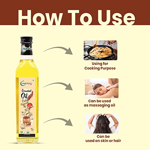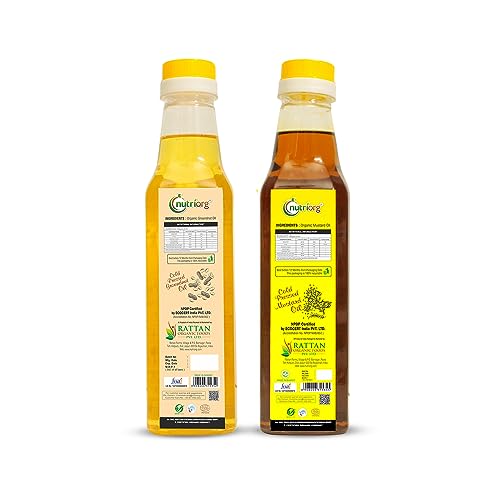 Nutriorg Organic Mustard & Groundnut Oil ( Pack of 2*500 ml) | Cold Pressed | Wooden Pressed | Essential Cooking Purpose | Unrefined | Natural Filtration for Nutrients Retention| Hair & Skin Care