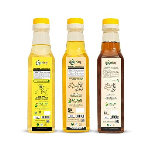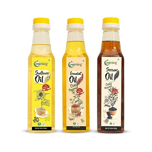 Nutriorg Organic Sesame Oil , Sunflower & Groundnut Oil ( Pack of 3 * 500 ml) | Essential Cooking Purpose | for Hair & Skin | Rich Vitamin E