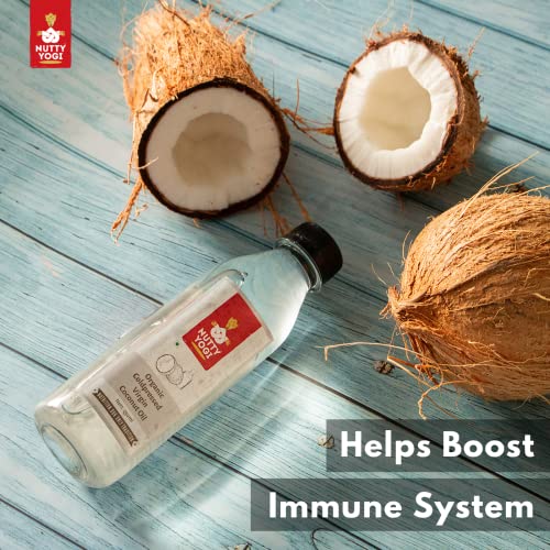 Nutty Yogi 100% Organic Cold Pressed Extra Pure Virgin Coconut Oil for Cooking Hair Growth & Skin Care | Ideal for Baby Massage & Oil Pulling | Unrefined | Vegan | Unfiltered | Chemical-Free - 250ml
