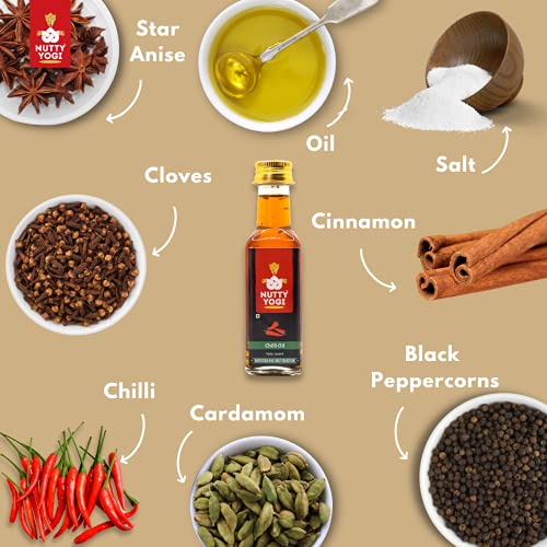 A specialty from our Nutty Chef. the ultimate garnish oil to add oodles of flavor to anything - a salad a stir fry or your favorite continental dish. We make it in house - in small batches to add freshness while ensuring the nutrition is taken care of. Its crafted with pure and natural spices with the best quality Bydagi Chilli flakes. Its one of our premium finishing oils.