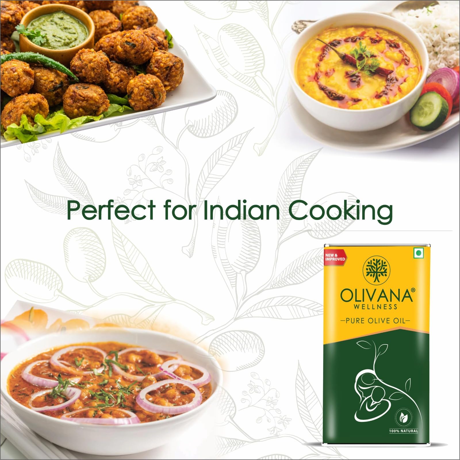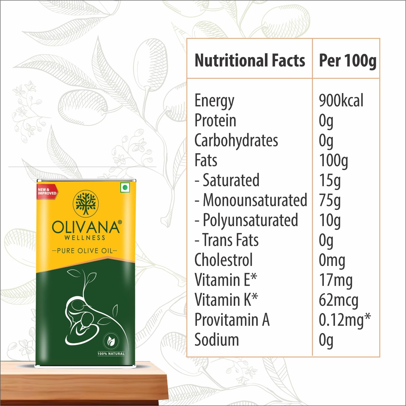 Olivana wellness olive oil is made with special ingredients imported directly from Spain Italy and other Mediterranean countries. It is rich in vitamin A and pro-vitamin A. It is best for light western cooking and is suited for body message too. It is suitable for all skin types and results in shiny soft and healthy skin.