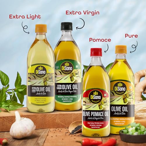 Disano Olive Pomace Oil : Disano Olive Pomace oil has neutral taste and aroma. It is ideal for all Indian cooking specially for Deep frying (Roasting) Sautéing & Grilling.Disano Olive Pomace Oil does not change the Original taste of Daily Indian cooking. It has a high smoking point which makes it ideal even for deep frying. It is less absorbed in food very less ensuring low intake of Oil. You can prepare all Type of Cuisine using Disano Olive Pomace Oil.