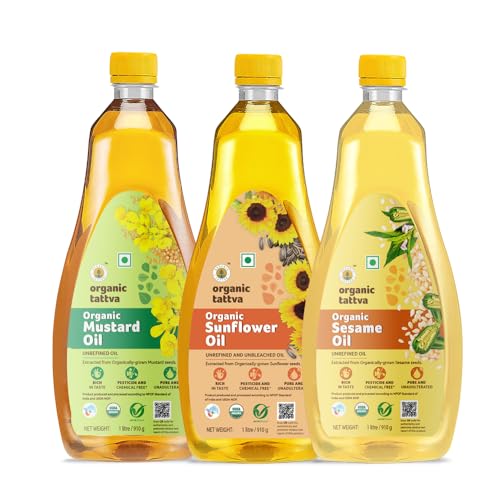 Organic Tattva's Organic Mustard Sunflower and Sesame Oil are extracted from naturally developed mustard Sunflower and Sesame seeds respectively. Being engaged with a characteristic interaction it holds all its unique constituents and properties. It is utilized as a sound substitute for cooking oils. Organic Tattva's Organic Edible Oils are rich wellspring of iron and different supplements.