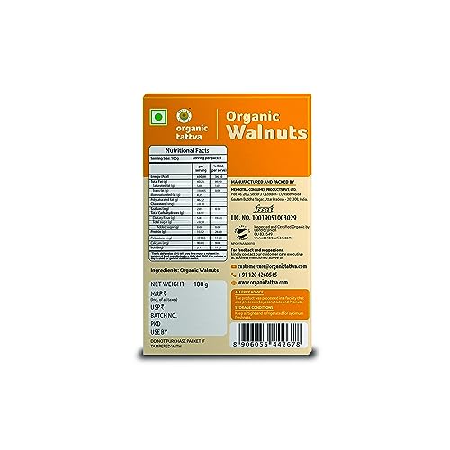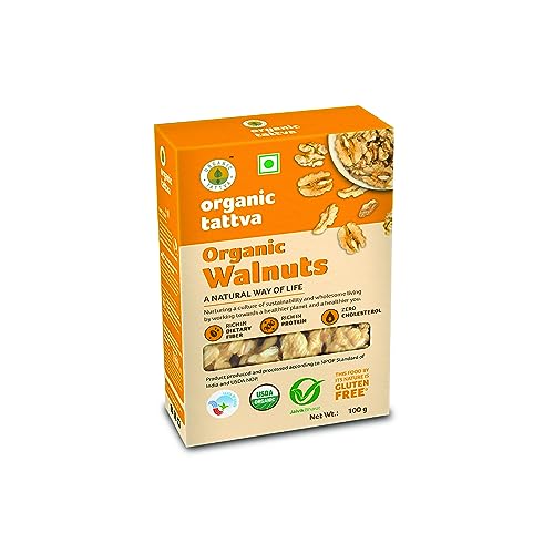 HomeGroceryCookingCold Pressed OilsOrganic Tattva, Organic Kashmiri Walnuts (Akhrot Giri) 100gm | Rich in Dietary Fiber and Protein | Source of Iron and Calcium | With Natural Oils | Cholesterol Trans-Fat Free | Naturally Gluten Free