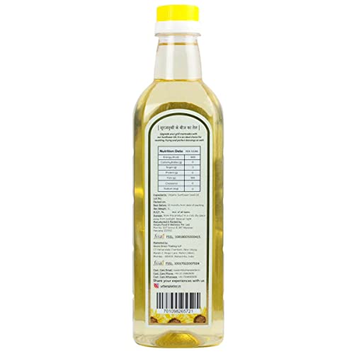 organic sunflower oil 1 litre / 33.8 fl.Oz [pressed aromatic -healthy] organic sunflower oil has a light amber colour with a mild flavour. The oil contains a rich content of vitamin e. Sunflower oil is used for low-to-extremely-high-temperature cooking. Upgrade your grill marinades with our sunflower oil. It is an ideal choice for sauteing frying and perfect dressings as well. Cook bake grill and fry drizzle over quinoa and roasted pumpkin sunflower melon flax chia seeds to make a tasty superfood rich salad.