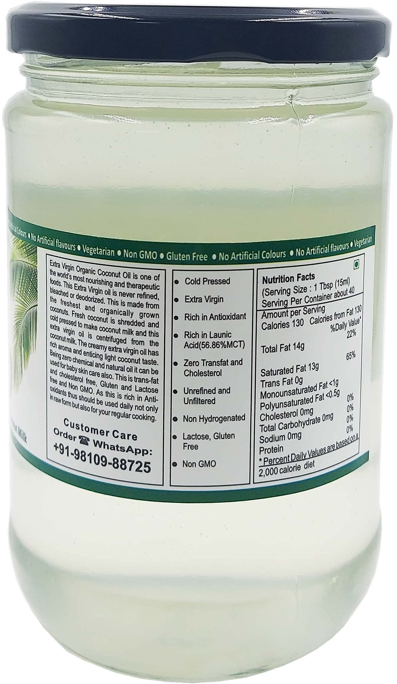 Extra Virgin Organic Coconut Oil is one of the world’s most nourishing and therapeutic foods. This Extra Virgin oil is never refined bleached or de-odorized. This is made frthe freshest and organically grown coconuts. Fresh coconut is shredded and pressed to make coconut milk and this extra virgin oil is centrifuged frthe coconut milk. The creamy extra virgin oil has rich aroma and enticing light coconut taste. Being zero chemical and natural oil it can be used for skin care o. This is transfat and free and Lactose free and Non GMO. As this is rich in Anti-thus should be used not only in raw form but o for your regular cooking. Consume daily this hugely beneficial extra virgin Coconut oil.