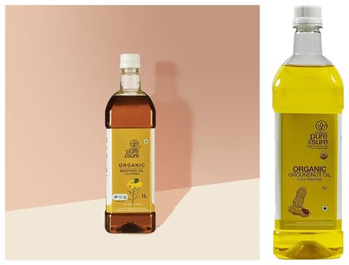Pure & Sure Organic Groundnut Oil | Healthy Groundnut Oil for Cooking | No Trans Fats Groundnut Oil 1 LitrePhalada Pure and sure is a range of certified organic food products stemmed from our aim of providing complete solutions across organic supply chain. By offering end consumers quality organic food products which are sourced directly from farmers we make sure our involvement in the supply chain from farm to hands. Our products guarantee purity and reach your hands without the use of chemical fertilizers additives or artificial ingredients. We go one step further to satisfy our customers: In areas where our supplies are limited we source premium organic products from across the globe and deliver a complete range of pure products that sure serves you the best. By sowing our vision we harvest quality and spread healthy organic practices.Pure & Sure Organic Mustard Oil | Cold Pressed Mustard Oil for Cooking | Healthy Mustard Oil No Trans Fats 1L.Phalada Pure and sure is a range of certified organic food products stemmed from our aim of providing complete solutions across organic supply chain. By offering end consumers quality organic food products which are sourced directly from farmers we make sure our involvement in the supply chain from farm to hands. Our products guarantee purity and reach your hands without the use of chemical fertilizers additives or artificial ingredients. We go one step further to satisfy our customers: In areas where our supplies are limited we source premium organic products from across the globe and deliver a complete range of pure products that sure serves you the best. By sowing our vision we harvest quality and spread healthy organic practices.