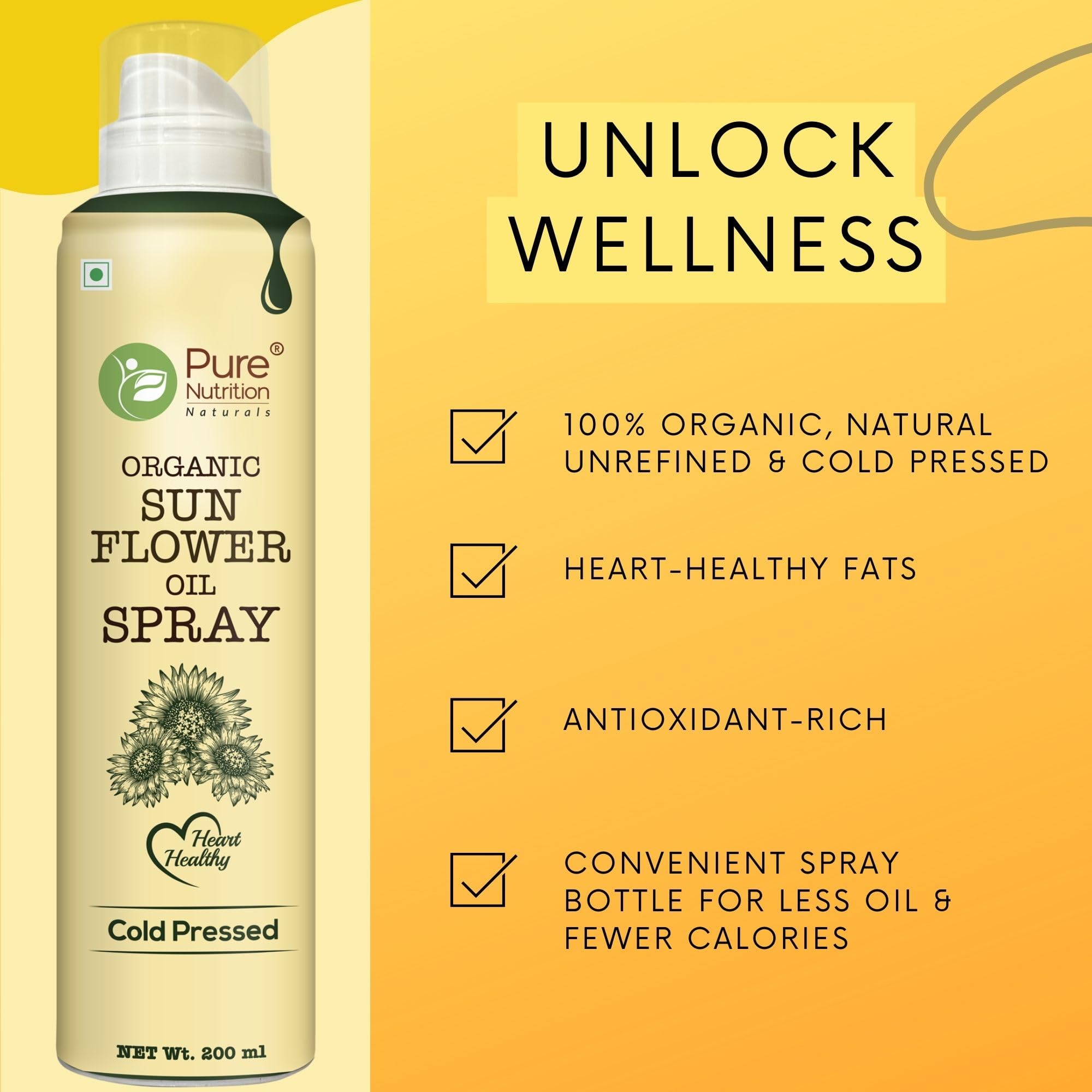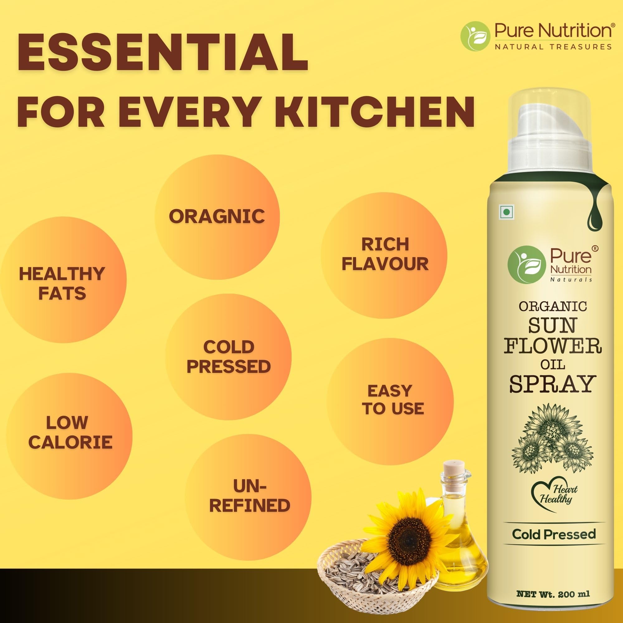 Experience the convenience of Pure Nutrition Sunflower Oil Cooking Spray designed for health-conscious cooks. This 100% pure and edible spray allows you to cook with 10X less oil making it perfect for healthier meals without sacrificing flavor. With its high smoke point it's ideal for frying baking and sautéing. The 200ml spray bottle ensures easy mess-free application helping you achieve perfectly coated dishes every time. Elevate your cooking while keeping it light and nutritious!
