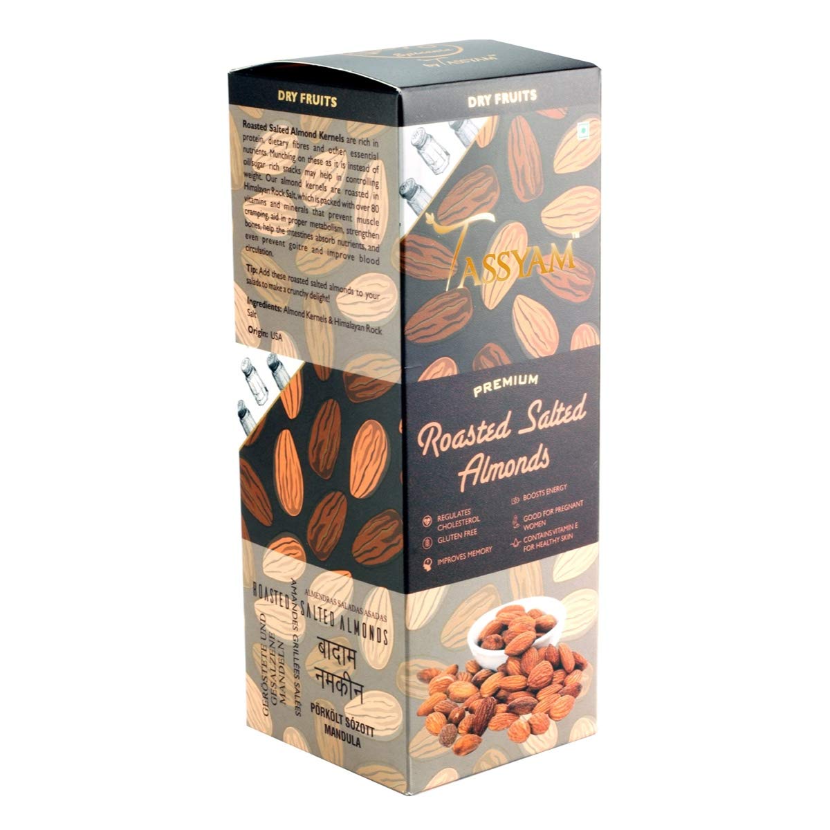 Tassyam Premium Roasted Salted Almonds 250g Namkeen Badaam Giri | Oil Free Roasting