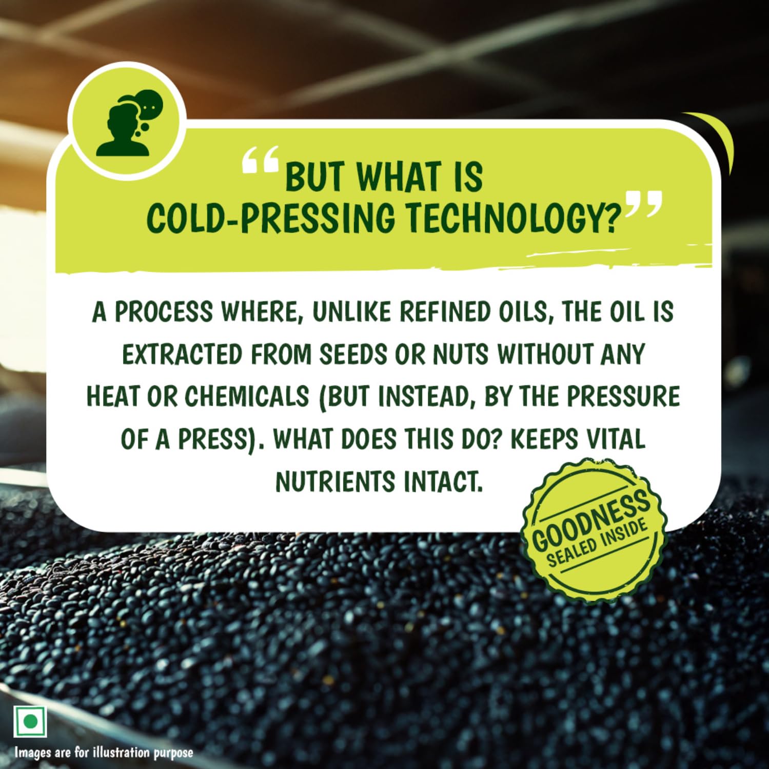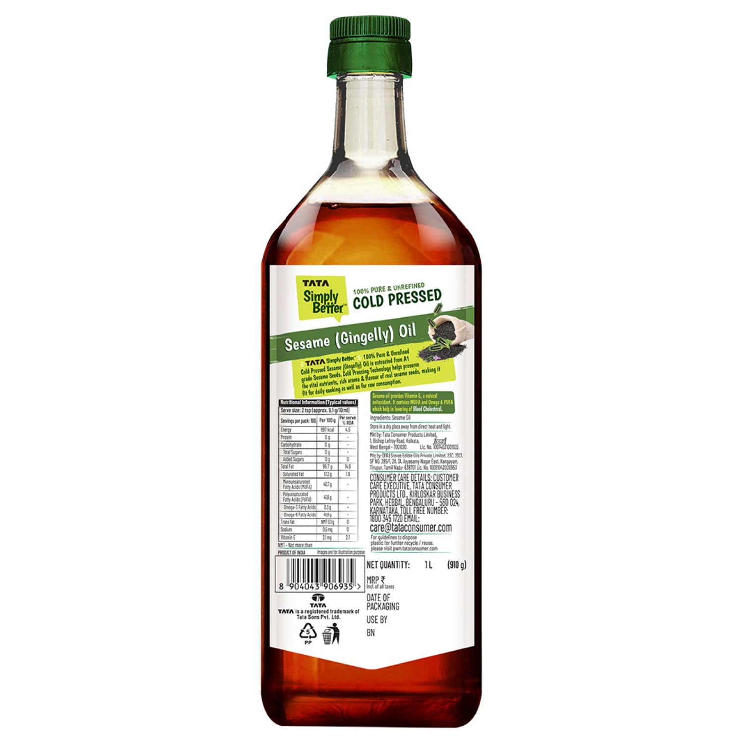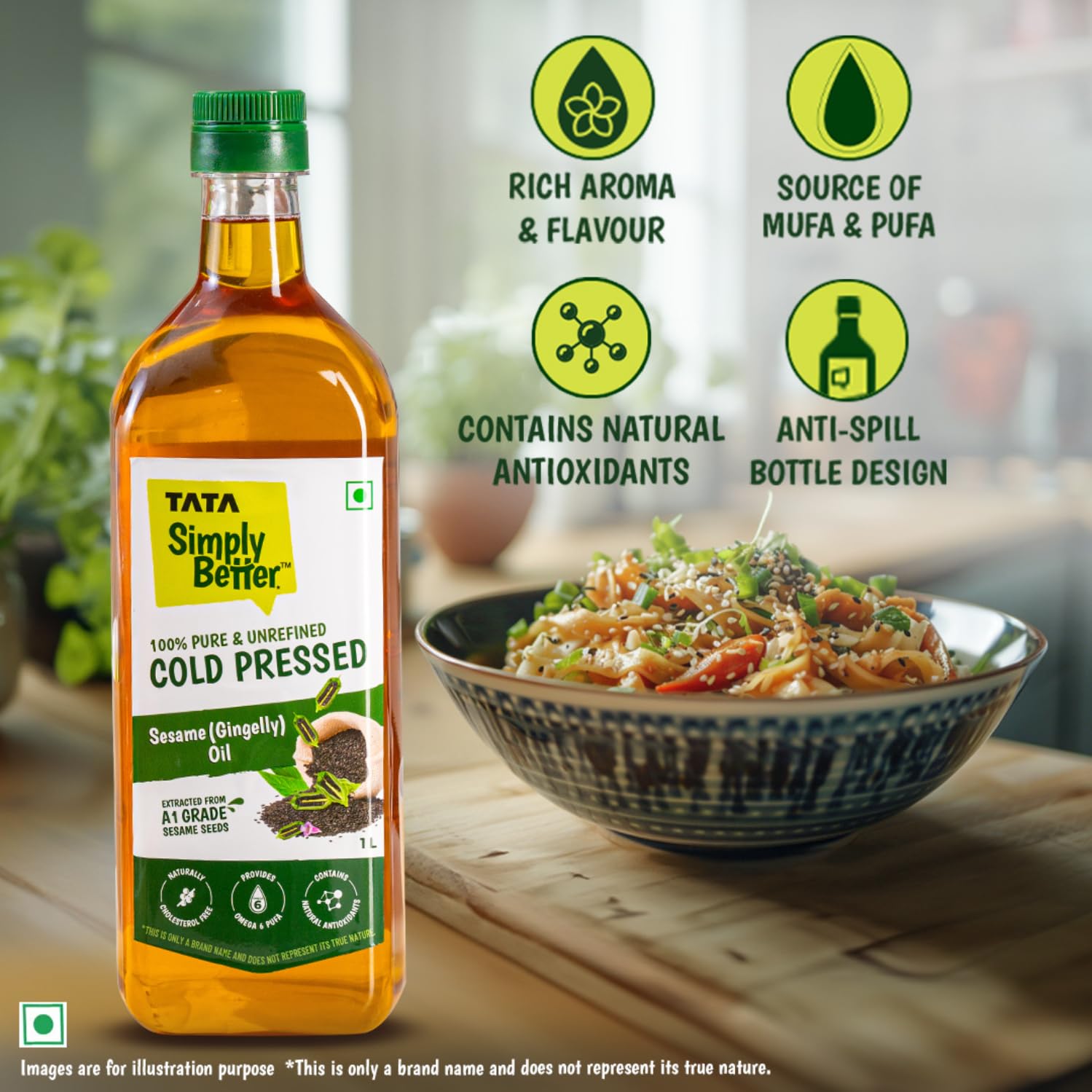• EXTRACTED FROM A1 GRADE SESAME SEEDS: Tata Simply Better Cold Pressed Oil is extracted from A1 grade sesame seeds