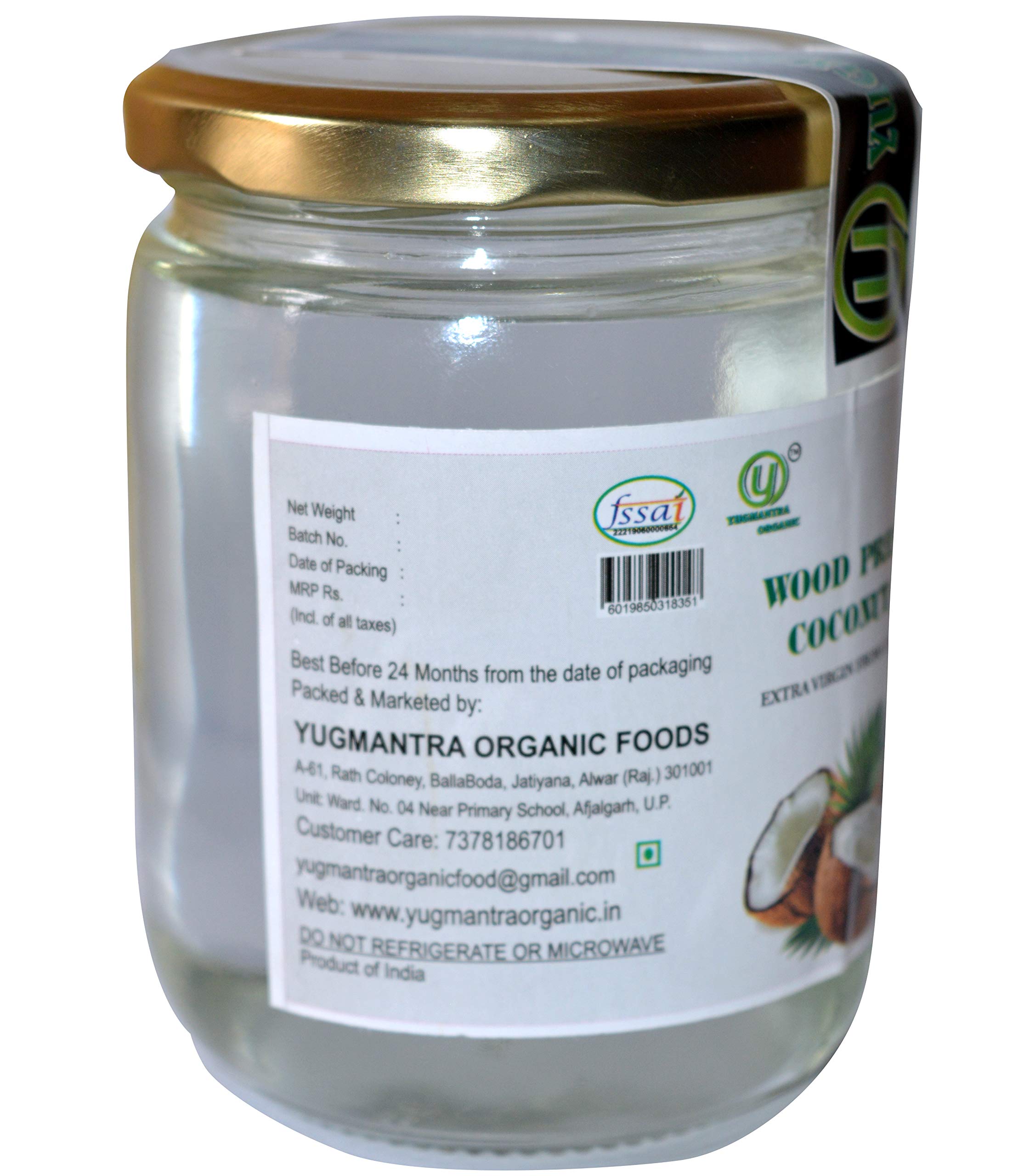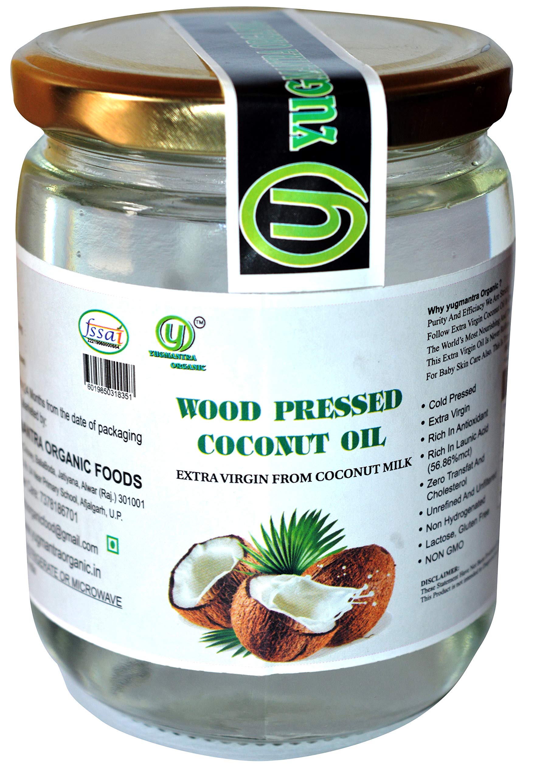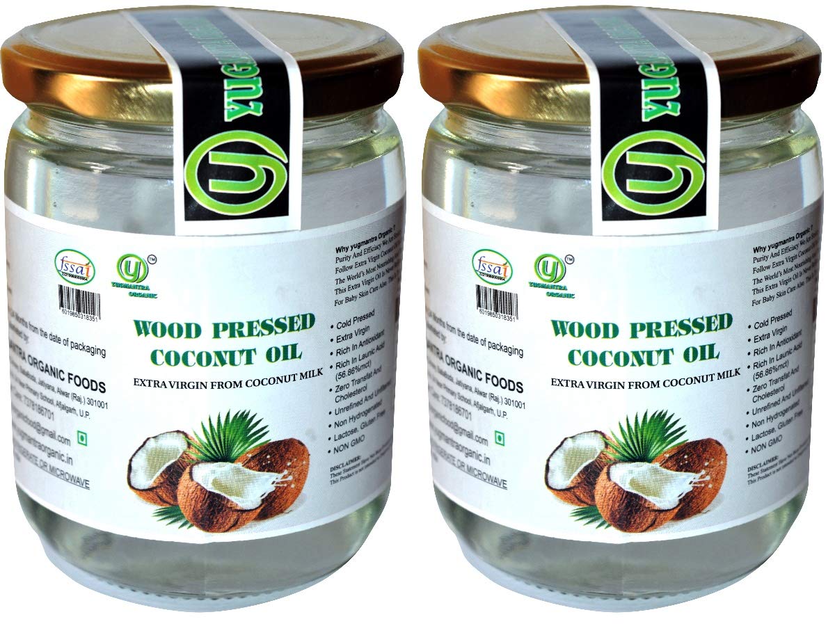 Yugmantra Organic Foods 100% Pure Natural Extra Virgin Wood Pressed Coconut Oil (500 ml x 2 pc)