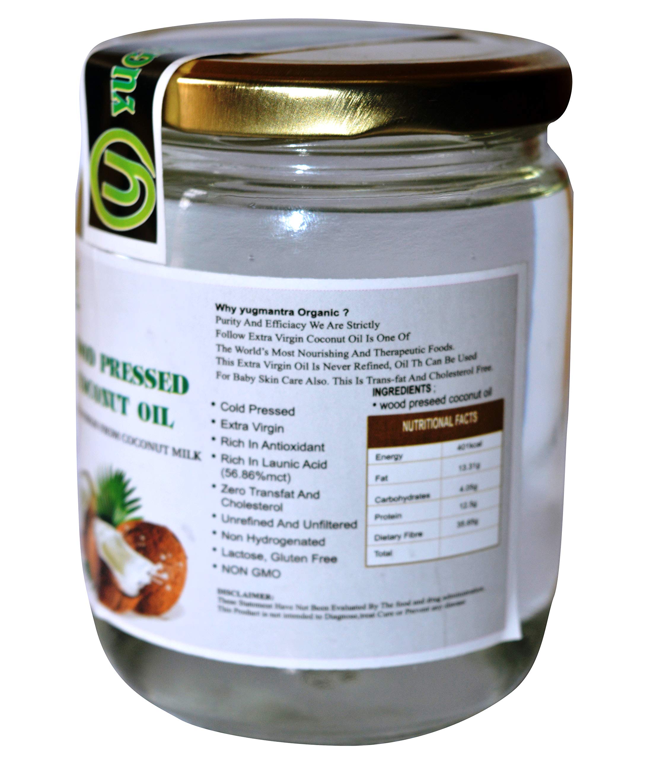 Extra Virgin Organic Coconut Oil is one of the worldâs most nourishing and therapeutic foods. This Extra Virgin oil is never refined bleached or de-odorized. This is made from the freshest and organically grown coconuts. Fresh coconut is shredded and cold pressed to make coconut milk and this extra virgin oil is centrifuged from the coconut milk. The creamy extra virgin oil has rich aroma and enticing light coconut taste. Being zero chemical and natural oil it can be used for baby skin care also. This is transfat and cholesterol free Gluten and Lactose free and Non GMO. As this is rich in Anti-oxidants thus should be used not only in raw form but also for your regular cooking. Consume daily this hugely beneficial extra virgin Coconut oil.