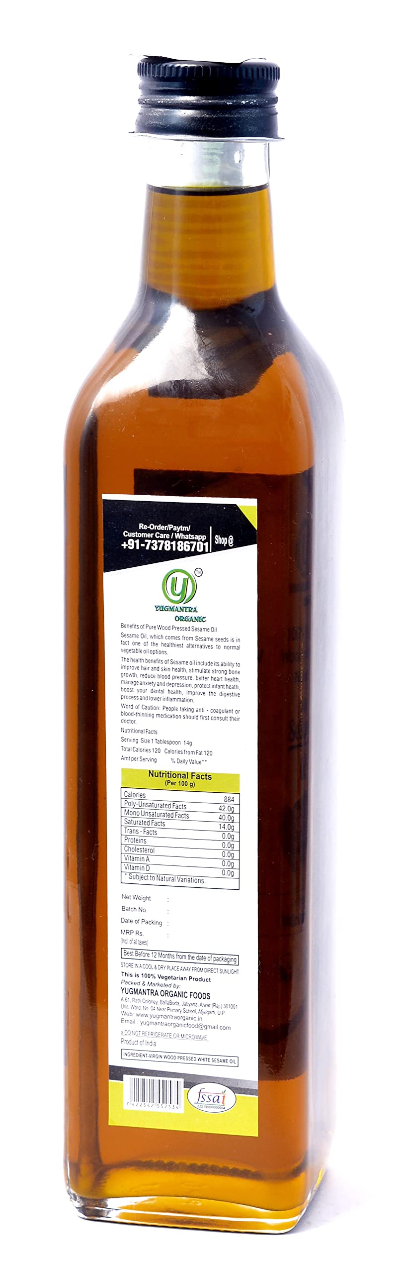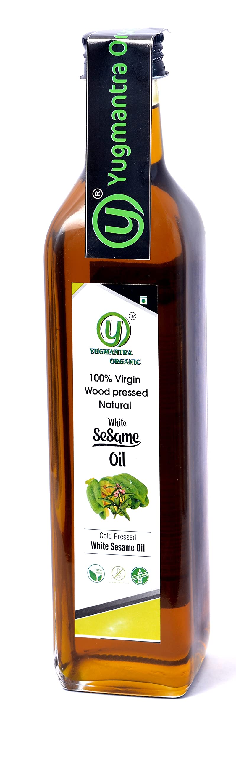 HomeGroceryCookingCold Pressed OilsYugmantra Organic Foods Wood Pressed White Sesame Oil Edible Gingelly Cooking Oil I Til Oil I Non-Sticky Kolhu oil I Kacchi Ghani l 500 Ml