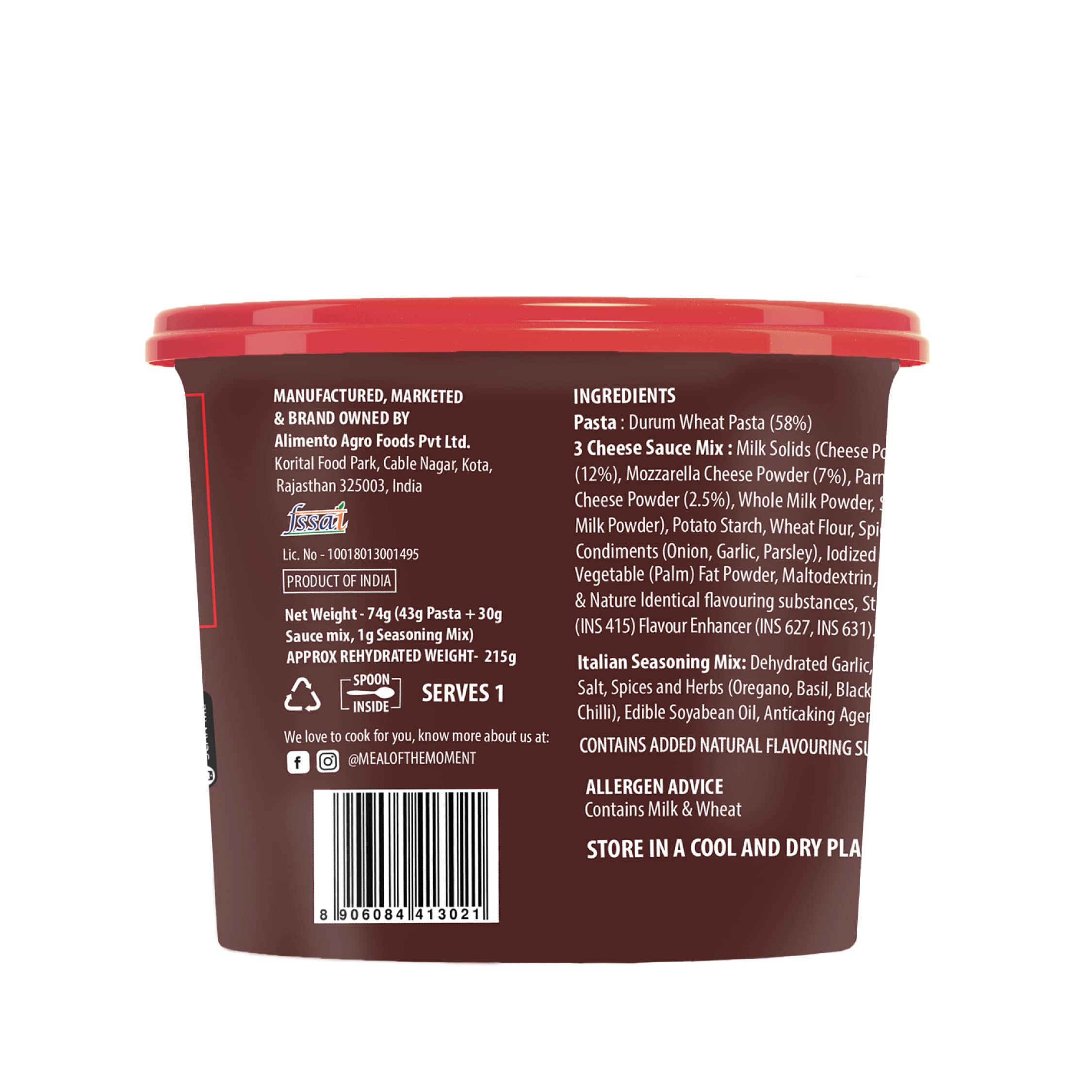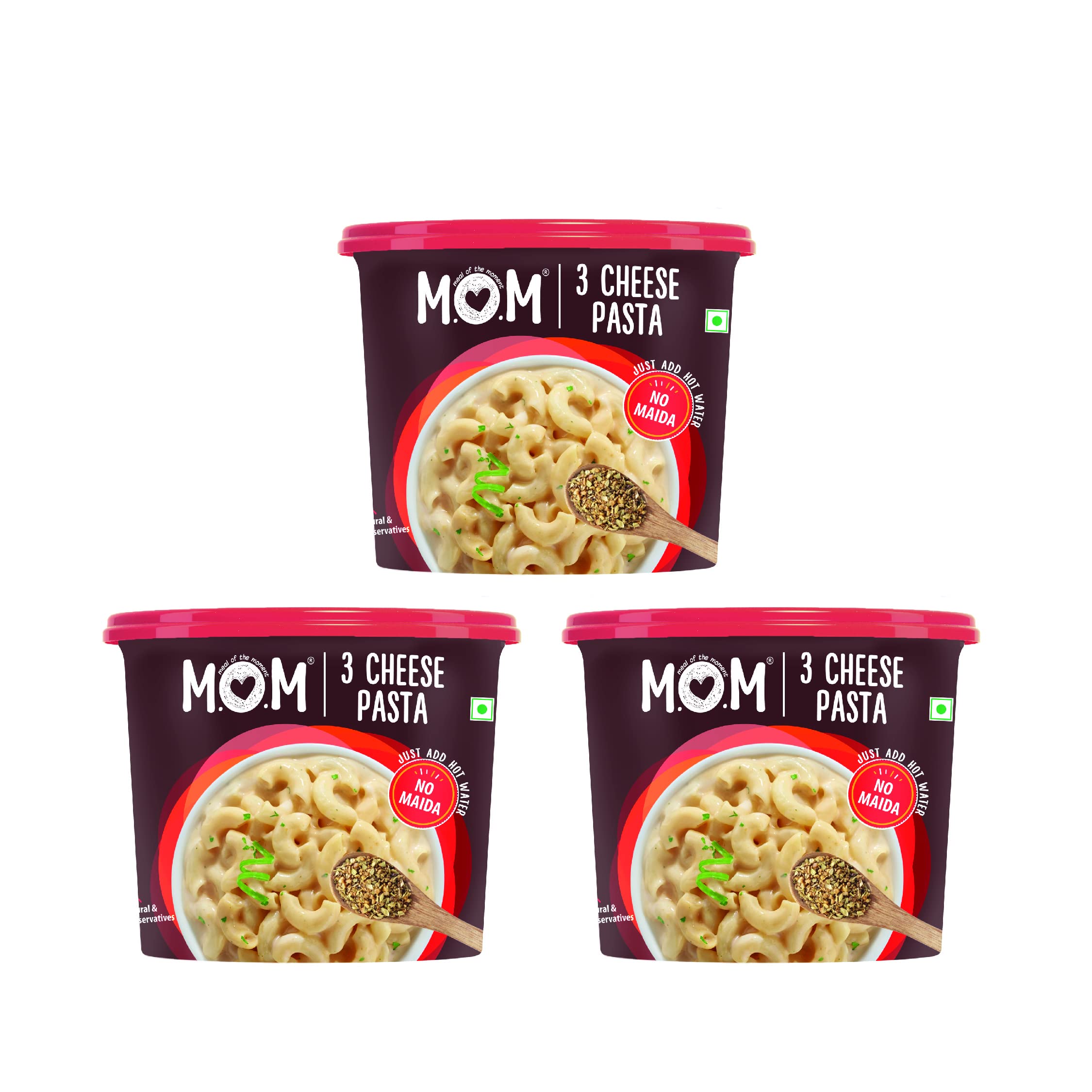 HomeGroceryCookingPasta & NoodlesMOM - Meal of the Moment 3 Cheese Pasta 74g (Pack of 3) - Ready to eat | No Added Preservatives | Instant Meals | 100% durum Wheat