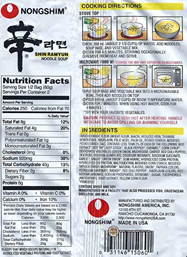 Nongshim Shin Ramyun Kimchi Instant Noodles 120Gm*6Pack (Imported) Vegetarian 120 grams
