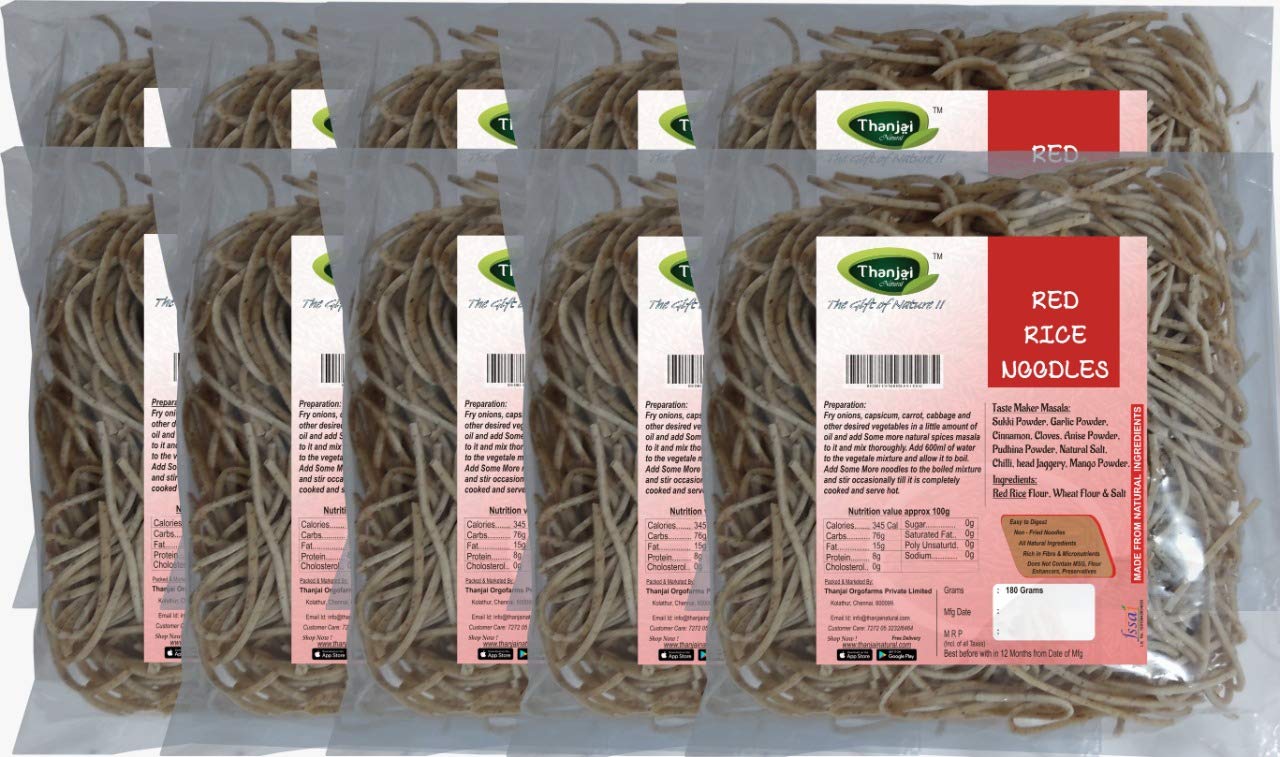 HomeGroceryCookingPasta & NoodlesThanjai Natural Red Rice Millet Noodles 180 Grams X 10 (1800 Grams) of Homemade Natural Millet Noodles( No Preservatives No Chemicals No Artificial Extract)