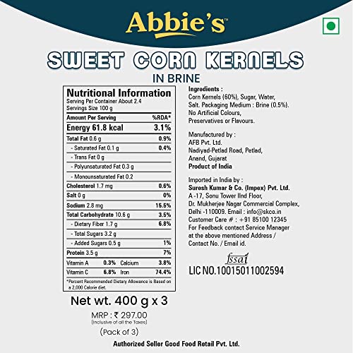 Abbie's Sweet Corn Kernels, 400 g (3)