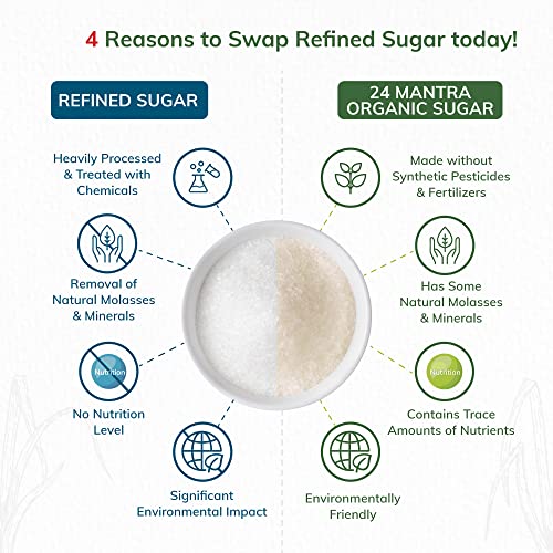 Product Description Sugar denotes sweetness. Cane sugar/Organic Sugar is an ingredient that has been around for a long time. Any auspicious moment or happy incident is marked by eating sweet which is a taste usually contributed by sugar. Any celebration is incomplete without sugar! Sugar occupies a very unique place in our culture. Sugar is a simple carbohydrate that is used in a variety of recipes from simple tea to gourmet Tiramisu. 24 Mantra Organic Sugar is made from a certified organic sugarcane crop From the Manufacturer 24 mantra brings to you organic sugar that is perfect for every health-conscious person who cares for natural products. Organic sugar is a product of organic farming. A special variety of sugarcane is cultivated with no chemical treatment i.e. Without the use of chemical fertilizer insecticide and pesticide. To grow organic sugar cane organic manure like dung or compost is used. 24 mantra ensures that customers get the best quality natural and pure organic sugar. This organic sugar is absolutely pure because even for processing vegetable clarification agent and herbal extracts are used to clean the sugar. Only 40 percent sugar can be produced from such brown sugarcane.What is Organic?Organic is a way a habit and a practice all rolled into one. It refers to a way of growing and processing food. It is also about the reliance on an ecological system that sustains itself on rich soil and proven traditional practices to grow crop and food that resists pests and diseases. Organic also means the farmers don't use toxic persistent pesticides fertilizers which are known to contaminate soil air water and the food. In fact organic farmers and farming involves practices of rotating crops deploying beneficial insects using locally honed methods adding composted manure and plant wastes to the soil.They choose solutions to the pests and disease problems that affect their crops in a way that does not damage and destroy the planet. Their wisdom is proven so are their practicesKey benefits No pesticides or harmful chemicalsBetter nutrition rich in antioxidantsBetter tasteBetter ecologySustainable -better planet for our childrenSafe foodNo water contaminationFarmers better lives10 reasons to go organic 1. Protect children and your family members from cancer causing pesticides 2. Say goodbye to chemicals in your diet 3. Get the taste of health and nutrition 4. Reduce health risks with Organic purity 5. Eat foods adhering to international standards 6. Protect the earth as organic farming is planet friendly 7. Prevent water contamination as there are no chemicals pollutants in organic farming 8. Gain from the diversity of crops which is becoming a thing of the past 9. Help small farmers and eliminate middlemen to create sustainable livelihoods 10. Stay in harmony with natureOur StandardsUS EU and India certified us. Organic certification is a process that helps producers of organic food and other organic agricultural products to get their products certified through internationally accredited certification bodies such as Control Union Onecert IMO Indocert etc. Organic certification is intended to assure quality and prevent fraud. Certified organic label is a product assurance for consumers worldwide.The standards are laid down and administered in India by APEDA. The standard is called the NPOP National Programme for Organic Production. Similarly the US standard is called USDA NOP (National Organic Programme) standards and the European Union standards are specified by regulation EC 834/2007Our FarmersThey come with different sizes of land. They belong to different States of India. They enjoy a reputation of being empathetic to nature and the planet. They care about growing healthy pure food. Organic farming begins with good well meaning farmers. They are at the core of our journey. For us it means partnering with them in a way that benefits them and sustains their lands and longevity. We have 20000 farmers working on 30 farming projects spread over 100000 acres in 15 States in India.