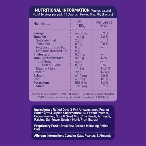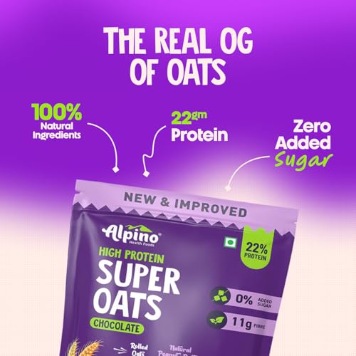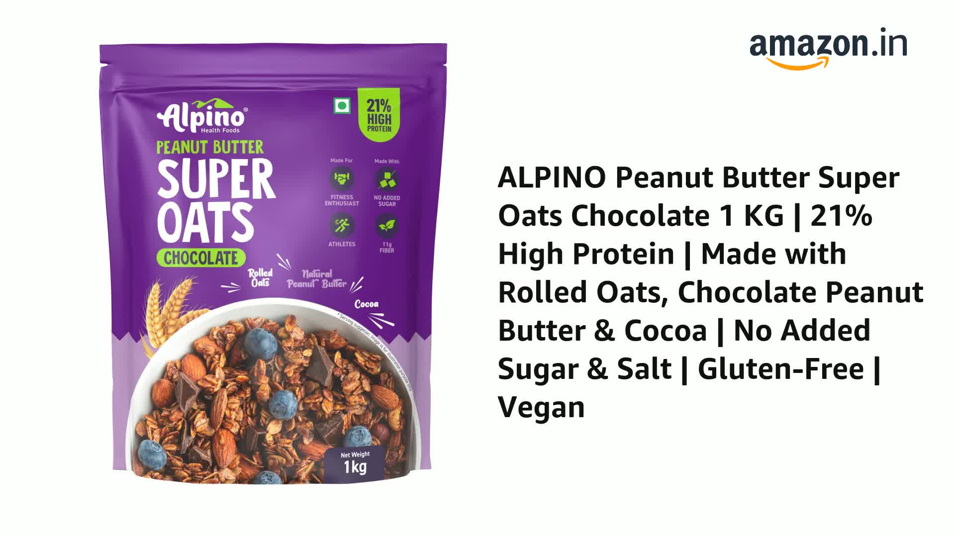 HomeGroceryCookingNatural SugarALPINO High Protein Super Oats Chocolate 1kg Rolled Oats Natural Peanut Butter Cocoa Powder Nuts & Seeds 22% Protein Source of Dietary Fibre & Healthy Fats No Added Sugar & Salt
