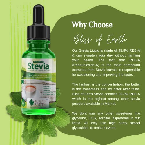 Bliss of Earth 6X30ml Original 99.8% REB-A Stevia Liquid Drops Glycerine Free Keto Sugarfree Sweetener in Glass Bottle