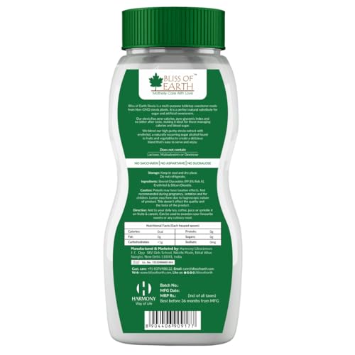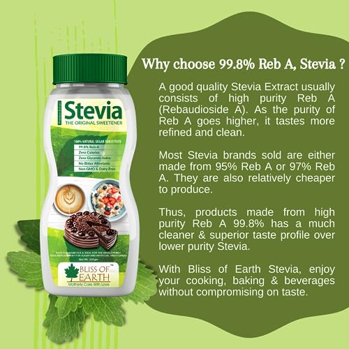 Bliss of Earth 99.8% REB-A Purity Stevia Powder for Diabetic Natural & Sugarfree Zero Calorie Keto Sweetener 3X200GM