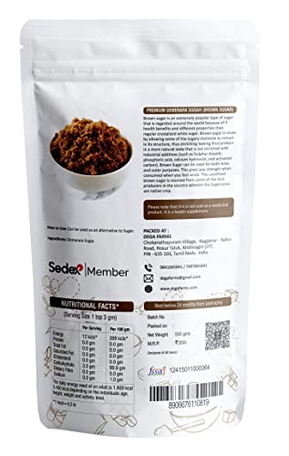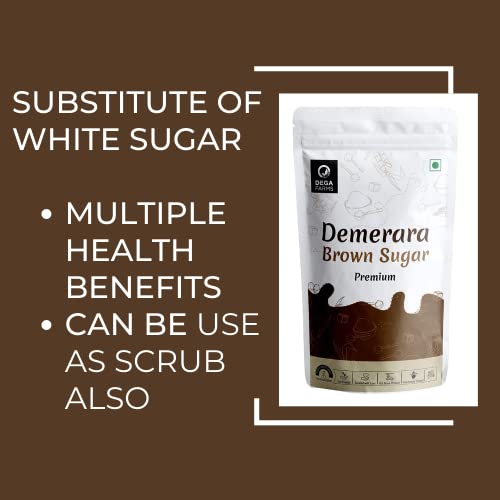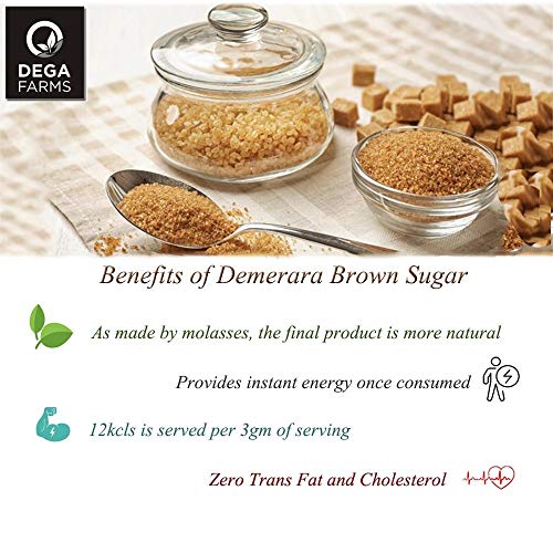 BENEFITS OF BROWN SUGAR - Demerara Sugar - As Demerara sugar naturally contains some molasses which itself has some vitamins and minerals such as calcium iron magnesium and vitamins B3 B5 and B6 (4). In general the darker the color of demerara sugar the higher the amount of molasses and minerals. Demerara sugar is produced from sugarcane and consists of large grains which provide a nice crunchy texture in baking. USAGE - Use it to make desserts cakes cookies breads pies tarts fruit salads and sweet sauces for a rich caramel flavour. Great in coffee smoothies milk shakes and coffee. INGREDIENTS - Demera Sugar (Brown Sugar)