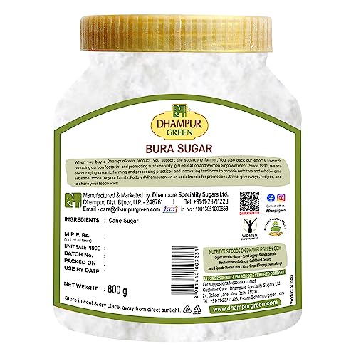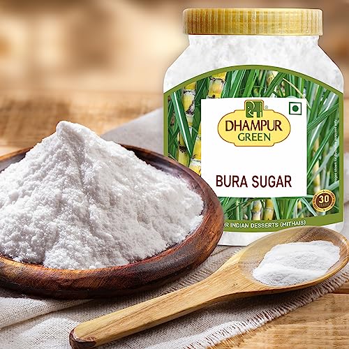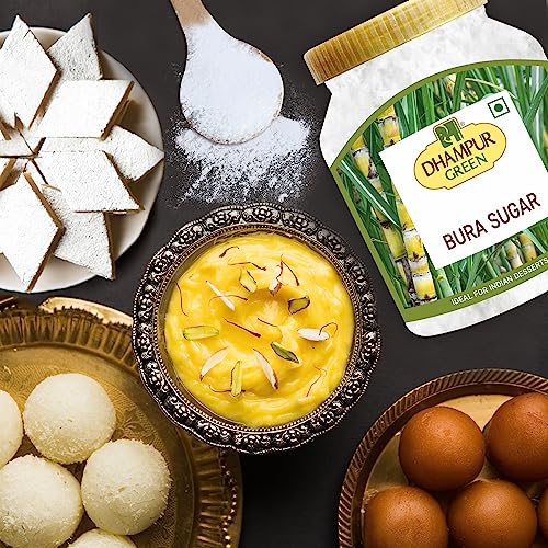 Dhampur Green Bura Sugar is the most preferred sugar for making Indian Mithais. It has fine sandy texture and is used to make all traditional Indian sweetmeats (mithais). It is free flowing lump-free and stays fresh for long periods. Note: Product Packaging may be changed by company at any point in time without any notification. Product packing may differ from the image. Bura Sugar may harden if not stored properly. Transfer contents from the pouch to an airtight container and keep in a cool and dry place. Never use a wet spoon to scoop out the sugar.