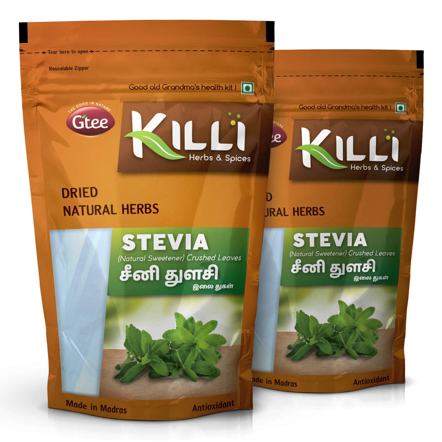 KILLI STEVIA CRUSHED LEAVESHEALTH BENEFITSStevia the natural sweetener is an ideal replacement to normal sugar. It is very low in calories and sweeter than sugar. It helps to support weight loss and regulates blood pressure.HOW TO MAKEMix sufficient quantity of Killi Stevia leaves to tea coffee fruit juices and in all foods where sweetness is required.KILLI HERBS & SPICESKILLI having its special care and scientific approach in every stop of processing of herbs to retain the active principle taste and aroma explores the value of traditional herbs with uncompromising quality and taste to customers. We believe that the traditional wisdom is the wealth of our Nation. KILLI's unique herbal combinations offers its customers the best healthy solutions. KILLI is a Registered Trademark of Gtee