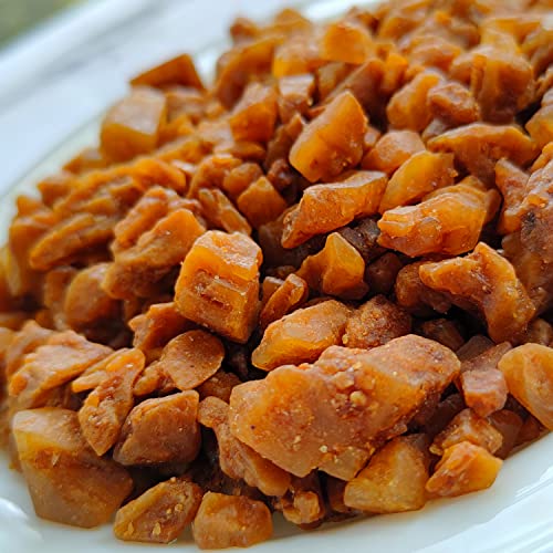 Dark Yellow Palm sugar is a natural sweetener that is made from the sap present in the flower buds of the palm trees and this special variety is the finest quality of its kind. It is known as natural sugar because it involves minimum processing and no chemicals are used. We heated the sap from the tree to wick away the moisture content until a thick syrup is obtained and this sweet nectar is then further reduced to crystals. The sugar has a mild caramel flavor and in its liquid form resembles honey whereas in the granular state it is not much different in taste as compared to white sugar. It is used in making curries sauces and desserts. Palm sugar is an unrefined sugar it is known to be rich in vitamins and minerals. As a result it has become increasingly popular as a substitute for white and brown sugar. Research studies have found that it contains minerals like potassium phosphorus zinc iron manganese and copper; small amounts of phytonutrients such as polyphenols flavonoids and anthocyanidin; and antioxidants. It is rich in B vitamins especially inositol (Vit8) which is needed for the formation of healthy cells as well as thiamine riboflavin folic acid and choline.