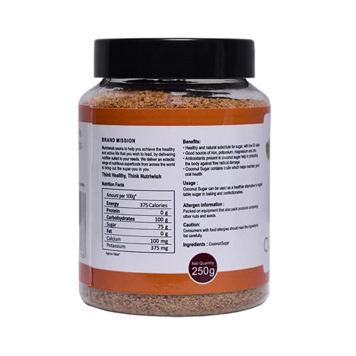 Nutriwish Coconut Sugar 250 g - Rich in minerals | Healthy sugar variety | Natural sweetener |