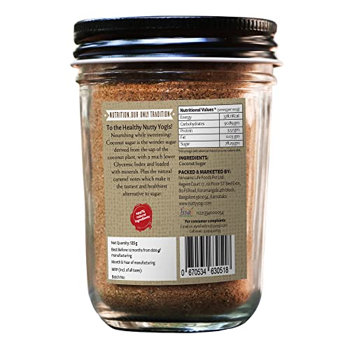 Nutty Yogi Coconut Sugar | Pure & Organic Coconut Sugar | Certified Organic & Healthy Alternative to Sugar | Freshly made Good For Sugar Control Low GI Vegan | Gluten & Preservatives Free - 125gm