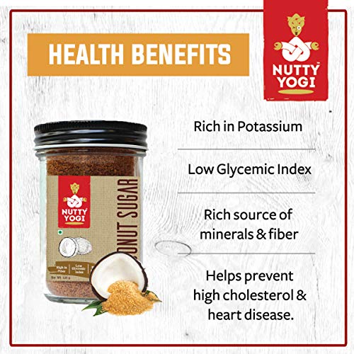 HomeGroceryCookingNatural SugarNutty Yogi Coconut Sugar | Pure & Organic Coconut Sugar | Certified Organic & Healthy Alternative to Sugar | Freshly made Good For Sugar Control Low GI Vegan | Gluten & Preservatives Free - 125gm