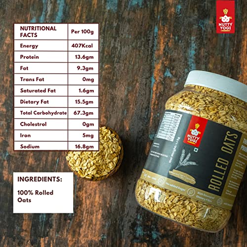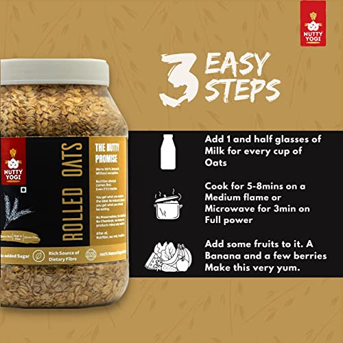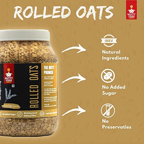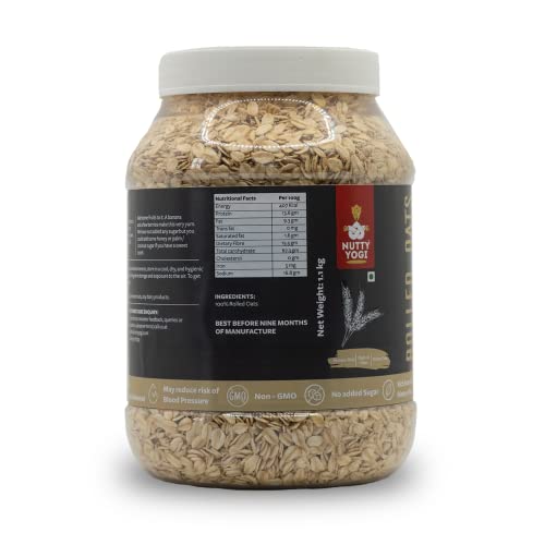 Nutty Yogi Gluten Free Rolled Oats Jar | 1.2 kg- (Pack of 2) | Quick & Instant Oats | Healthy Breakfast Cereal Specially For Oatmeal | No Added Sugar & Non GMO | Rich in Protein & Dietary Fibre