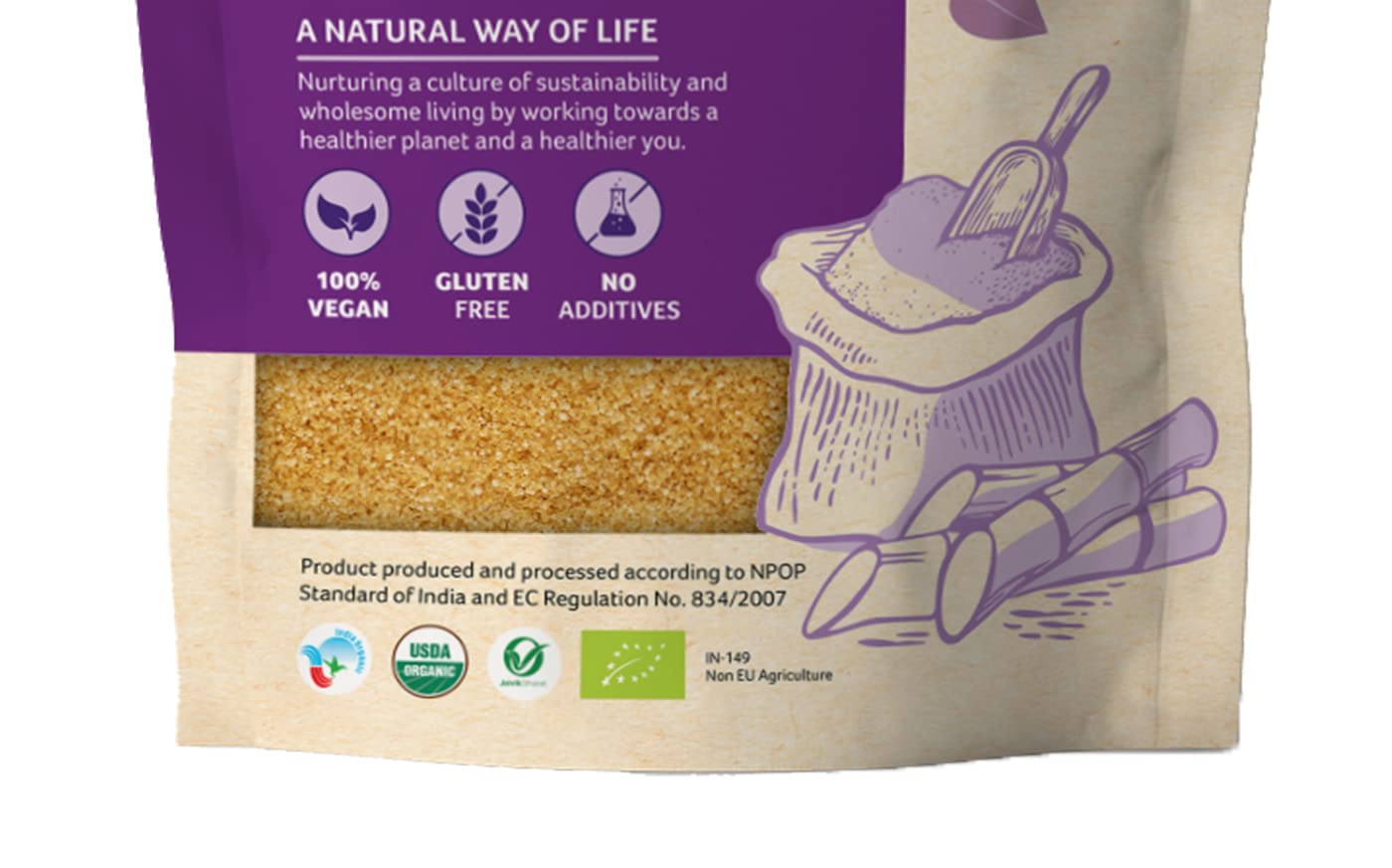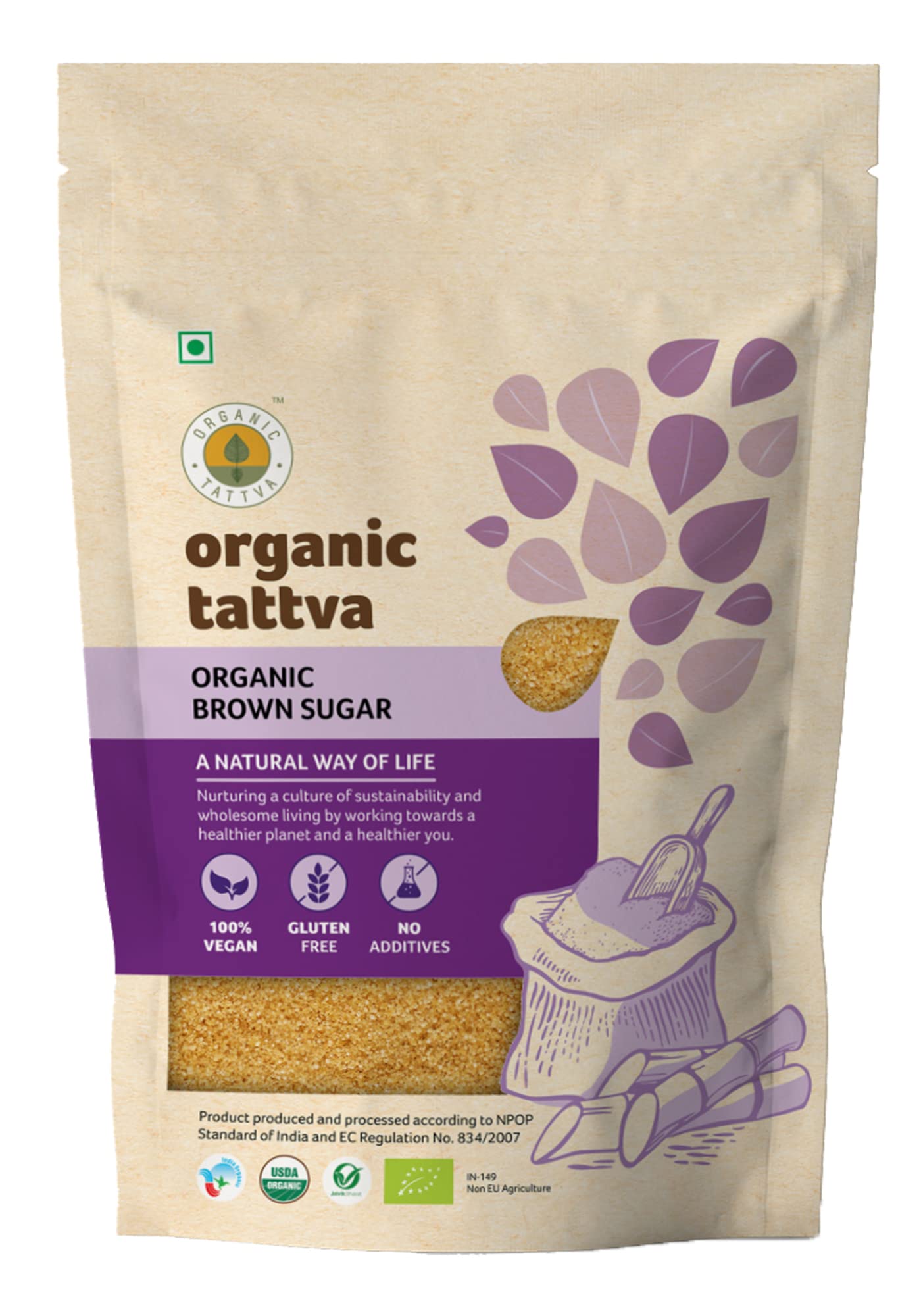Organic Tattva Organic Brown Sugar contains various types of essential nutrients and can be a source of an instant energy boost. It's rich with iron calcium phosphorus etc. A 100g serving of Organic Brown Sugar contains 0g trans-fat and 0mg cholesterol. The calorie count per serving of Organic Brown Sugar is 386. For a healthy lifestyle switch to Organic Brown Sugar by Organic Tattva today! Brown sugar is considered as one of the purest forms of sugar which contains molasses (which imparts the Brown colour to sugar) and is rich in minerals. Organic Brown sugar is ideal for people who want to balance their diet get healthy and gain some of its benefits. Also Organic Tattva Brown sugar is a natural organic sweetener that you can use to make a variety of foods taste better. Like every natural sugar brown sugar is made by taking sugar juice out of sugar beet or sugar cane plants. People make brown sugar by mixing white sugar with molasses giving it a different flavor and distinct nutritional makeup