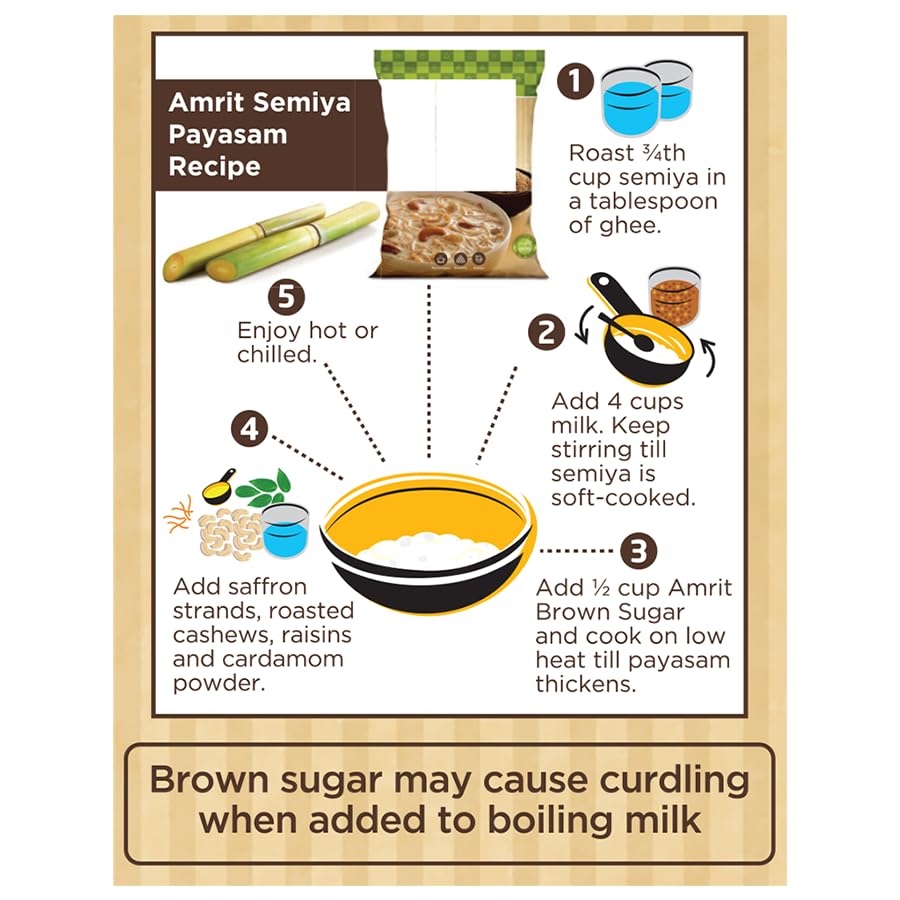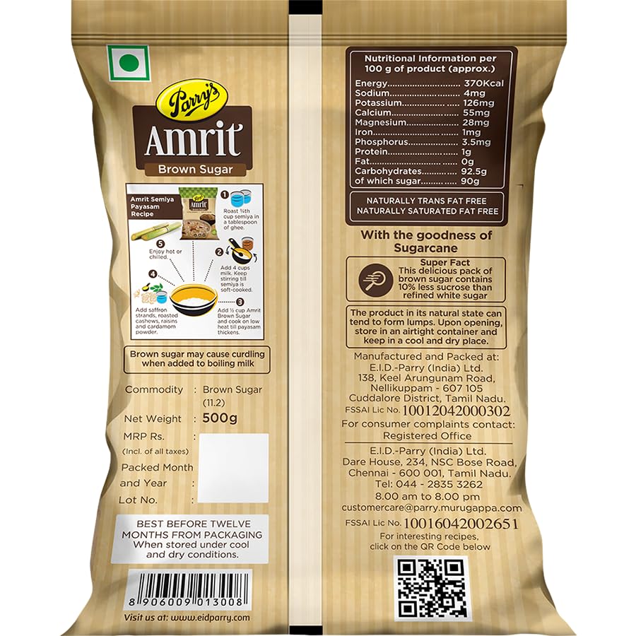 Parry's Amrit Brown Sugar is made with the goodness of sugarcane. This delicious pack of brown sugar contains 10% less sucrose than refined white sugar. It has original
