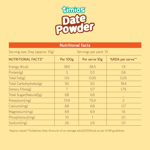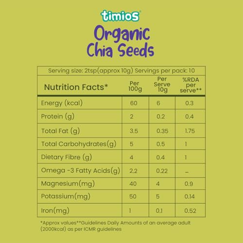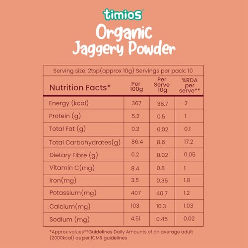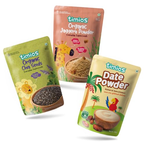The tiny nutrition-packed superseeds are now a staple in many health-conscious households. Thanks to their small size mild taste and versatility it's easy to incorporate chia seeds into your diet. The premium quality Timios chia seeds make a beneficial addition to your snacks and meals. Packed with essential nutrients including vitamins minerals and antioxidants chia seeds deliver a nutritional value that can support optimal health. Chia seeds contain soluble fiber that bring satiety prevents overeating and benefits the overall digestive system. Timios Chia Seeds are processed & produced as per USDA standards and certified by Jaivik Bharat. Experience the goodness of Timios Chia Seeds and embrace a healthier lifestyle. These nutrient-rich seeds are a natural choice for those seeking optimal nutrition balanced well-being and a delicious addition to their daily diet. A true superfood suitable for all ages from children to adults. Timios everyday superfood Jaggery Powder is a complimentary food for all ages above 2 years. This superfood sweetener is unrefined and free from any harmful chemicals or preservatives making it a healthy alternative to regular sugar. Jaggery contains more nutrients than refined sugar because of its molasses content which in turn adds a small amount of micronutrients to the final product. Timios Jaggery is processed & produced as per NPOP & USDA standards. It is a good source of antioxidants iron calcium potassium zinc and selenium. This powder is 100% organic and aids in digestion boosts immunity regulates body temperature and improves skin health. It is a great addition to any kitchen pantry and a must-have for health-conscious individuals who are looking for a natural and wholesome sweetener.