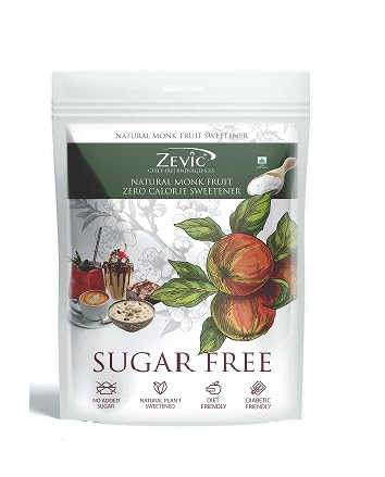 ZEVIC Monk Fruit Sweetener Organic Powder | 100% Natural Sugar Free Powder | Vegan & Zero Calories | Keto Natural Sugar Powder Substitute | Diabetic Friendly Sugarfree White Powder - 400g